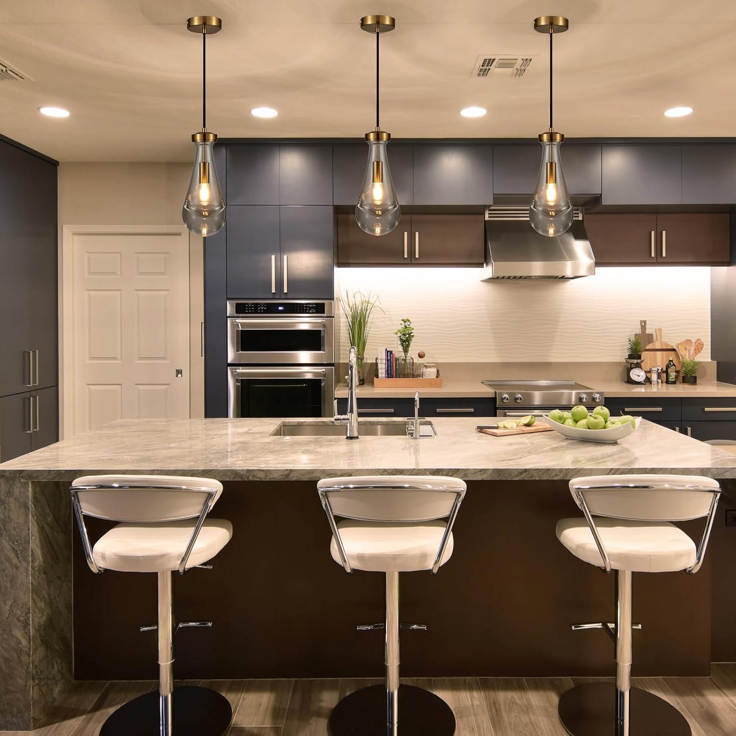 - 【Durable for Use & Easy to Install】Made of solid and transparent glass, Hanging Lamp is sturdy and durable and prevents rusting, corroding or fading. Pendant Lights Kitchen Island requires assembly; detailed installation instructions in the package will guide you on completing a quick installation!