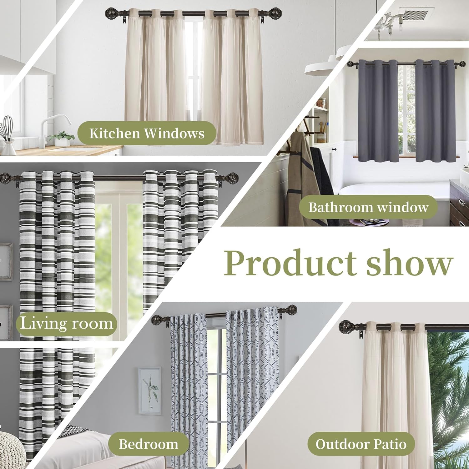- More Application Scenarios for Curtain Rods: Decorative drapery rods are suitable for any room in your home and match a variety of house styles and window treatments, including outdoor curtain rods for patios, curtain rods for bedrooms, living rooms, dining rooms and kitchens. It not only provides visual balance,but also adds a modern touch to your home decoration, enhancing the beauty and artistry of the room.