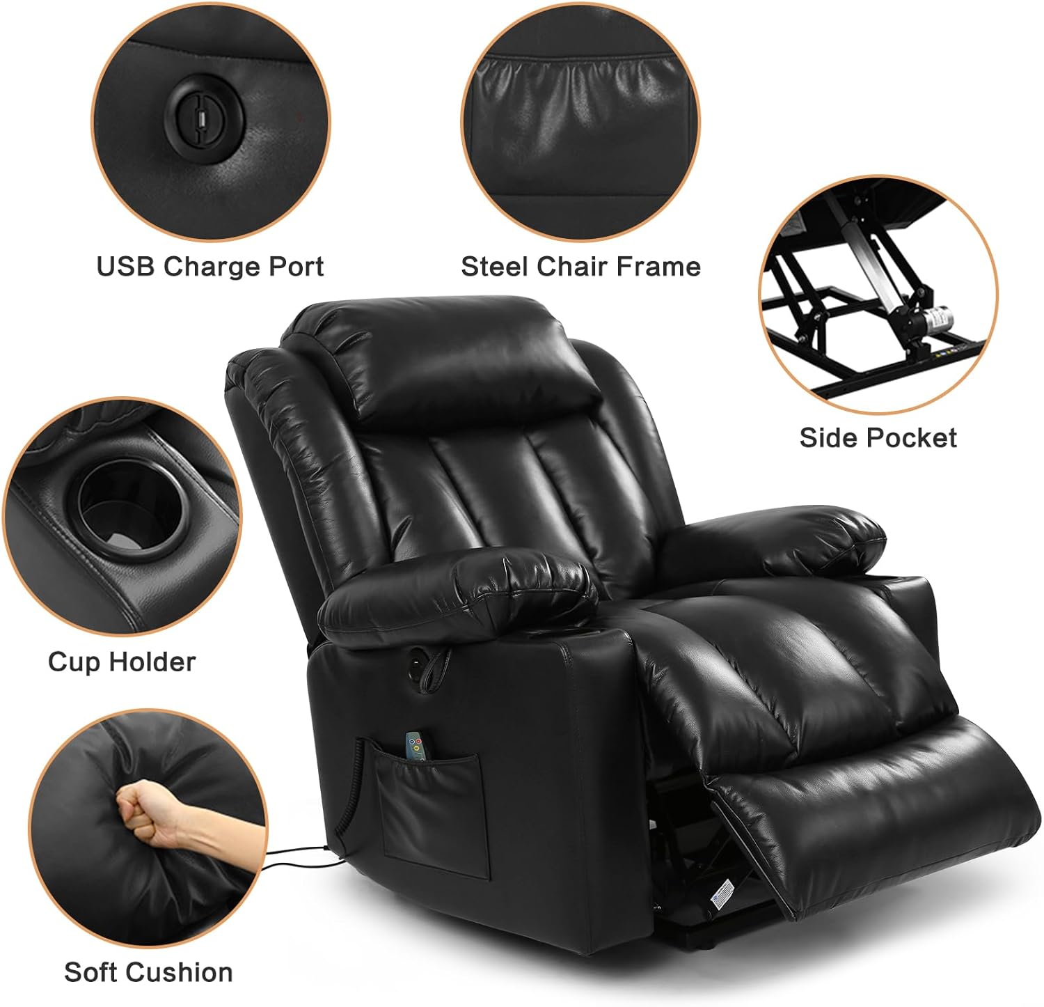 PARKOL Power Lift Recliner Chair for Elderly Breathable Leather Recliner Chair with Massage and Heat,2 Cup Holders,Electric Stand Assist,USB Ports,Gifts for Family (Black)
