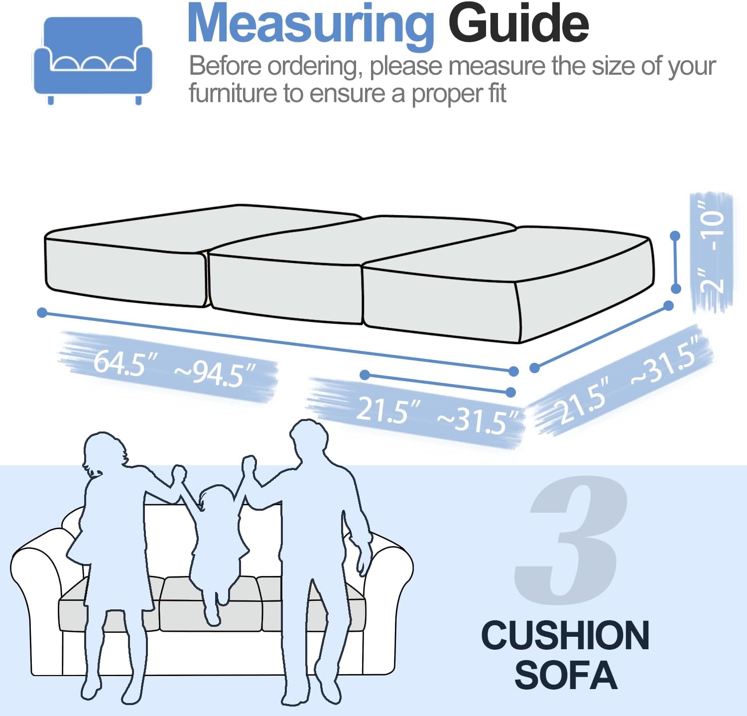 - 【Comprehensive Protection】The improved sofa cushions covers for 3 cushion couch can be used on individual seat cushions or on the backrest within the product's size range, as long as they can be detached from the sofa. They offer reliable protection against tears, stains, and spills, making them an excellent choice for households with kids and pets.