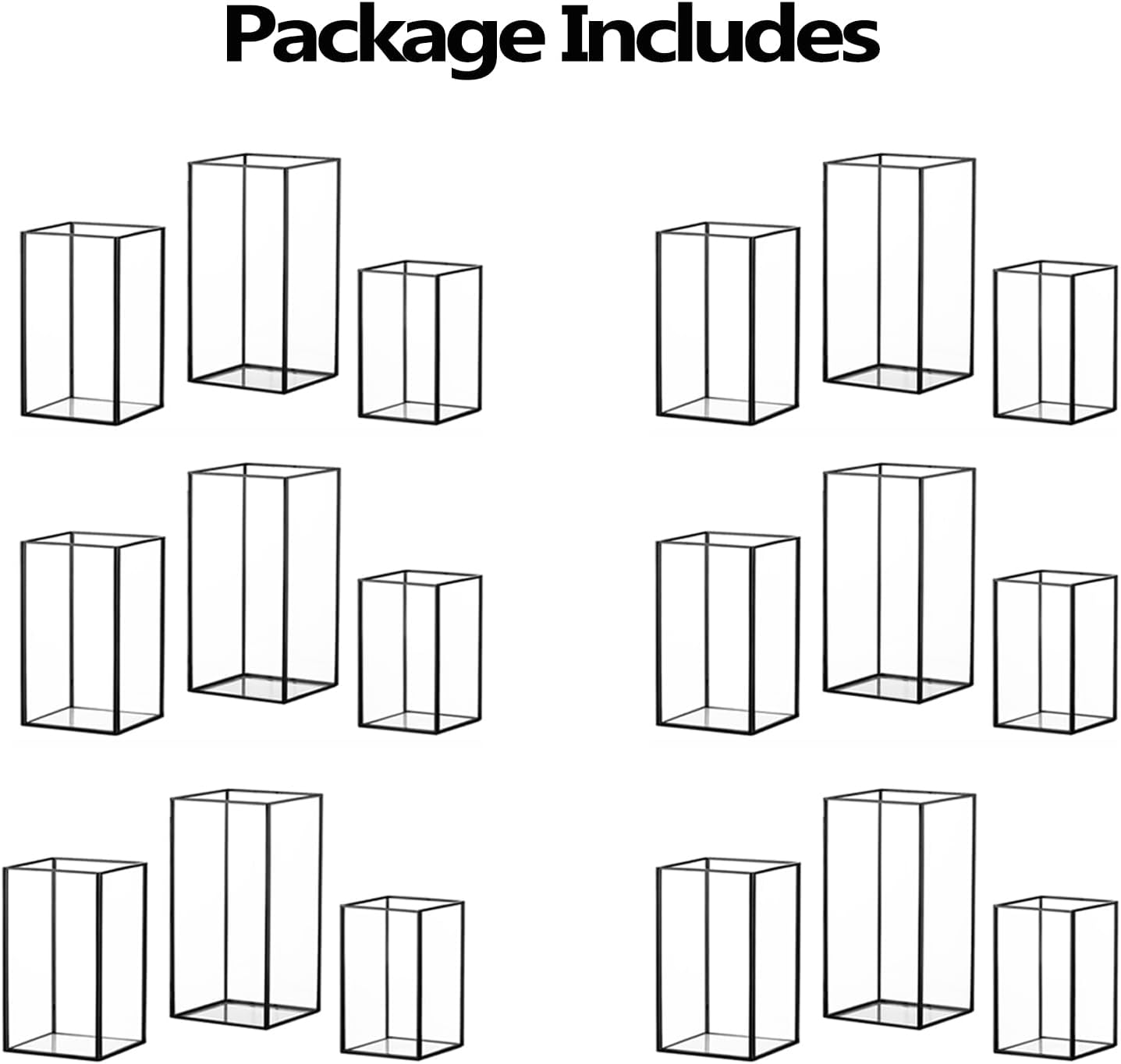 Hewory Glass Hurricane Candle Holder Set of 18, Black Large Hurricane Centerpiece for Table, Tall Floor Square Pillar Candle Holders Lantern Set for Wedding, Anniversary, Party, Fireplace, Dining Room
