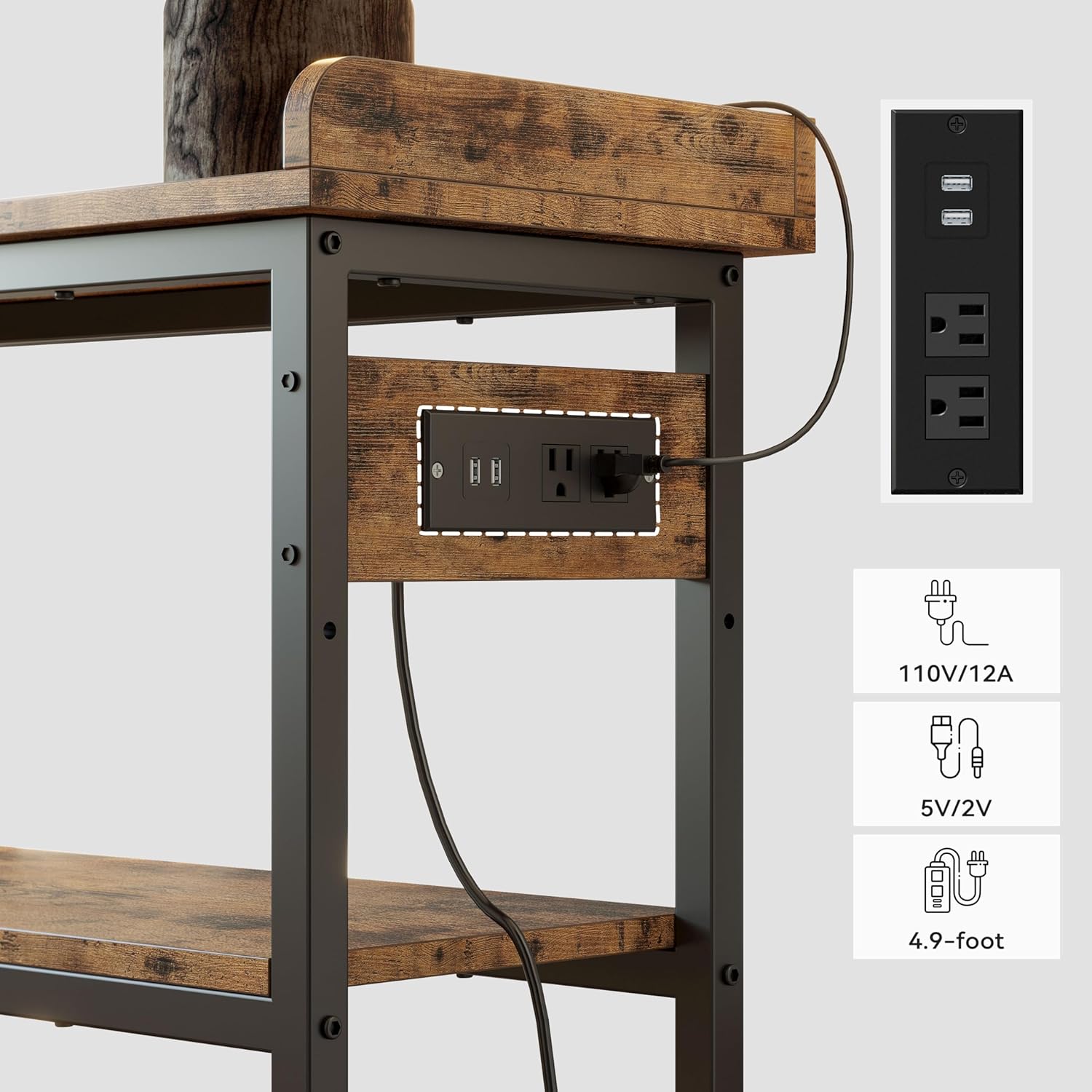 IRONCK Console Table, Sofa Table with Power Outlet, Farmhouse Hallway Table for Entryway, Living Room, Height Adjustable, Easy Assembly, Rustic Brown,32"