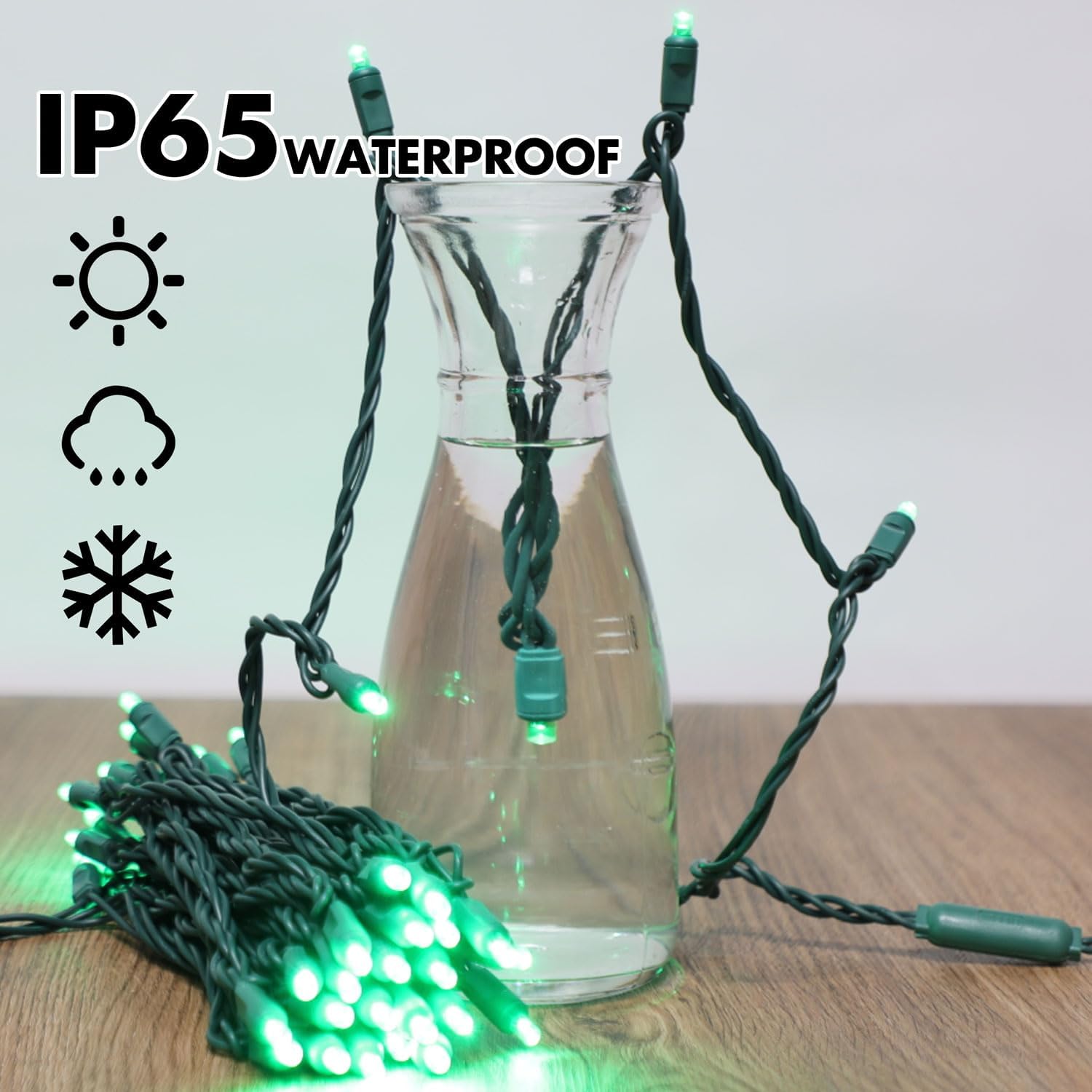 - WIDELY USE : Indoor/Outdoor rated,Green led lights are nice and bright,use for weddings,parties,decorated patios,Christmas wreaths,garland,wrapping tree's,they light up all the lovely nights.