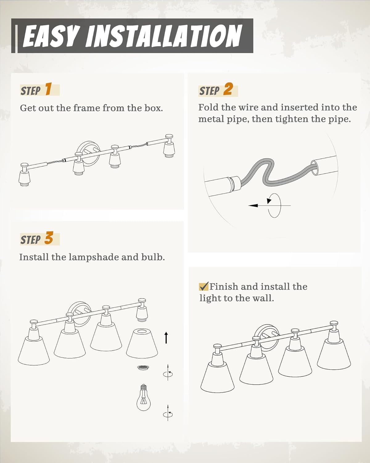 - [Bulb Requirements]: Support any E26 base bulbs ( Max 60W/each, bulbs are not included). This bathroom wall light is also designed to be dimmable when used with a dimmable bulb and compatible dimmer switch.