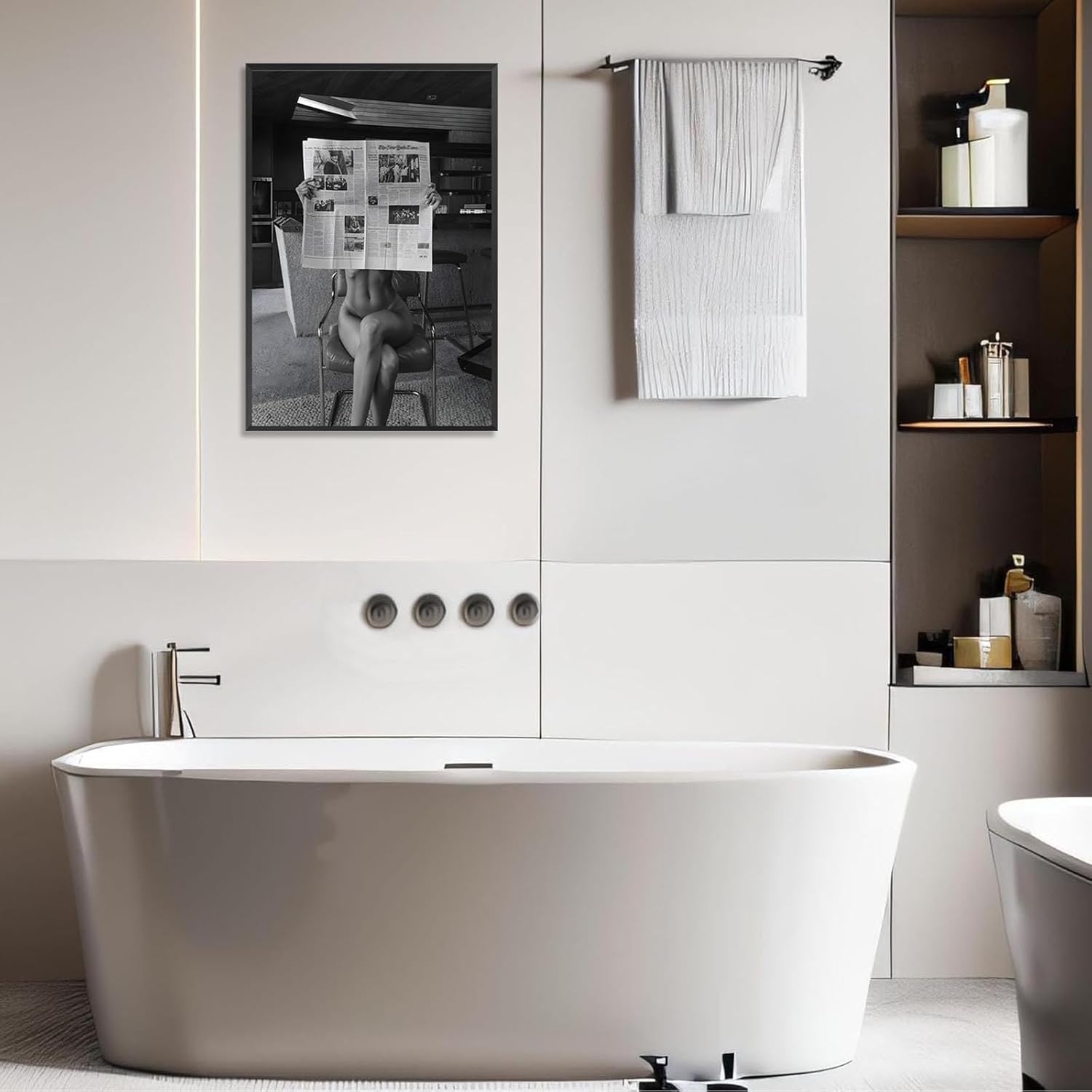 Sexy Glamorous Reader Poster Feminist Art Black and White Preppy Canvas wall art Retro Room Aesthetic Newspaper prints painting Trendy Naked Women Art wall decor 24x36in Framed