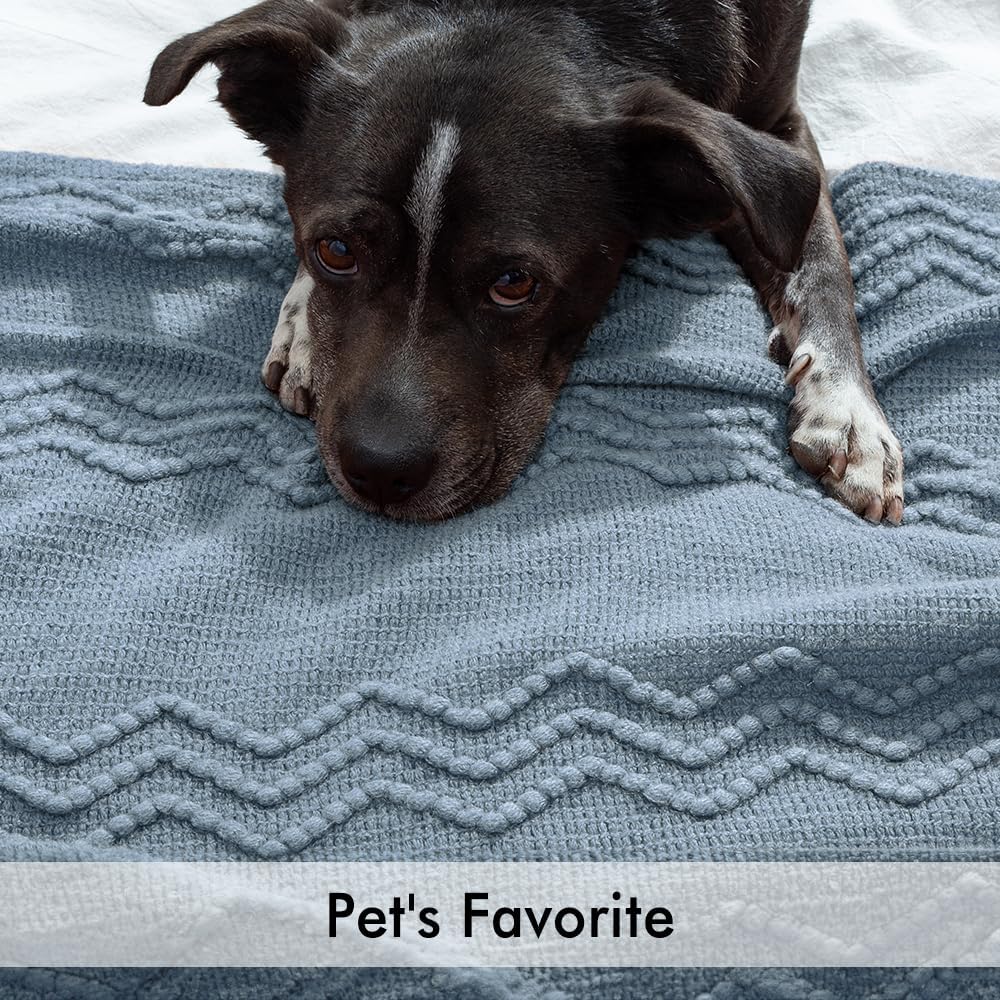 MIULEE Dusty Blue Cozy Knitted Throw Blanket for Couch Textured Knit Blanket with Tassels Woven Acrylic Wave Pattern Boho Blankets for Sofa Bed Chair 50"x60"