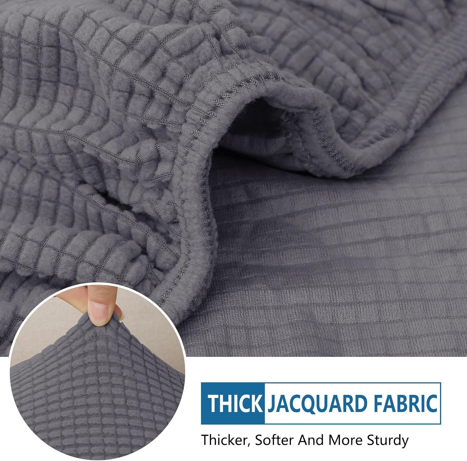 hyha Waterproof Sectional Couch Covers, Non Slip Sofa Couch Cushion Covers L Shape, Thick Stretch Jacquard Fabric, Washable Sofa Slipcovers with Elastic Bottom (1 Piece for Chaise, Middle Grey)