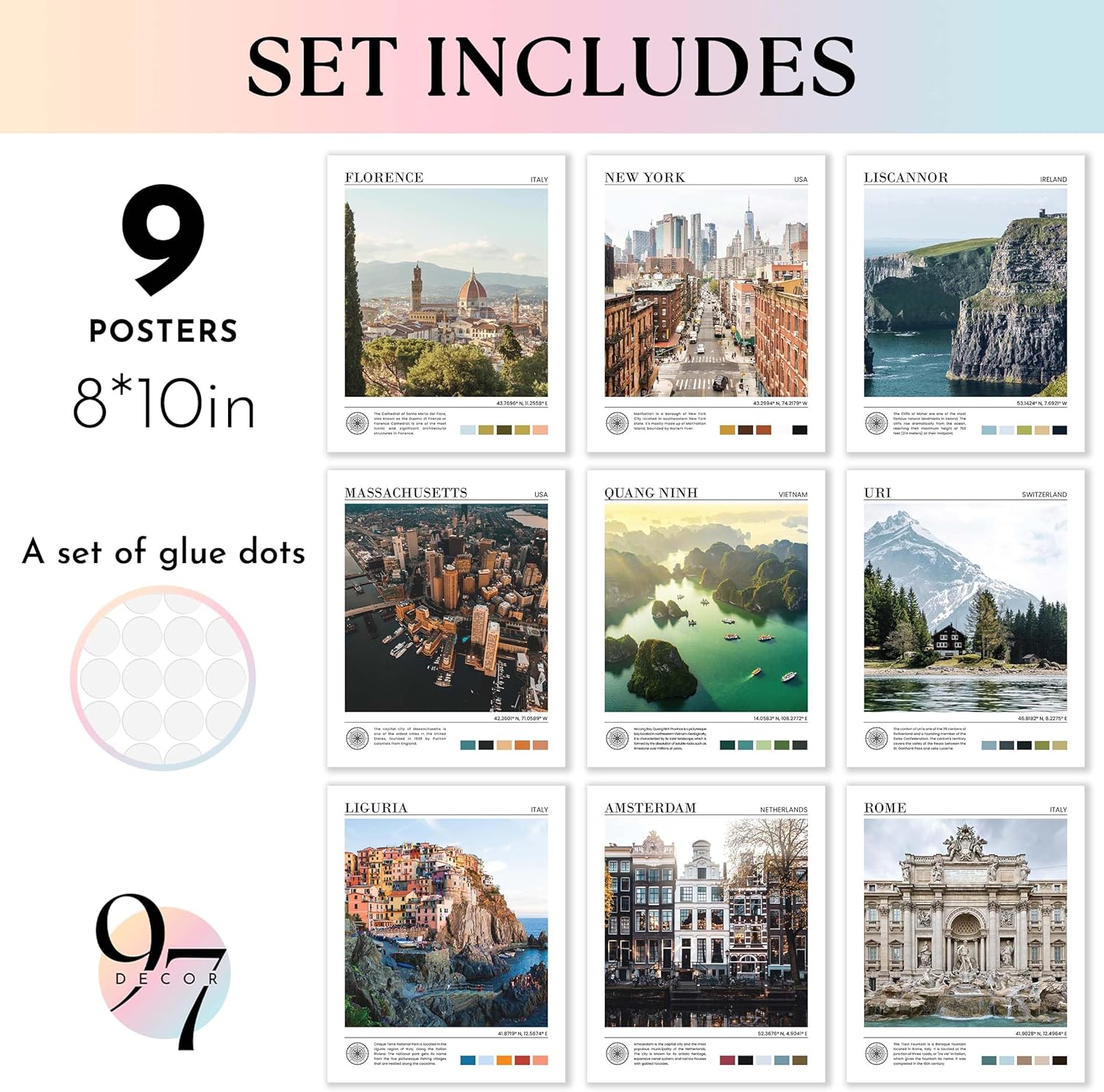 - SET INCLUDES: You'll receive 9 City Art Posters 8x10" (UNFRAMED), including famous architecture landscape wall decor like New York skyline wall art and cityscape pictures that are perfect for ant city bedroom decor
