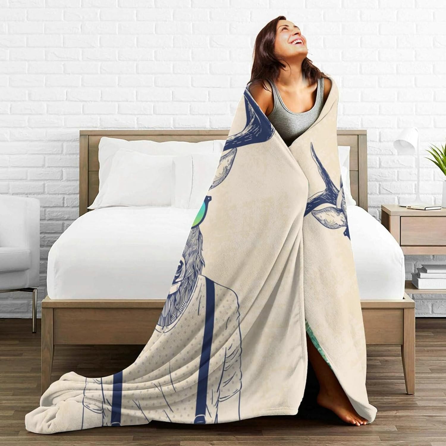 HGOD DESIGNS Deer Throw Blanket Deer Dressed up Like Cool Hipster Blanket Super Soft Flannel Throw Blanket Lightweight Plush Fuzzy Bed Blanket for Bedding Sofa and Travel 50"X60"