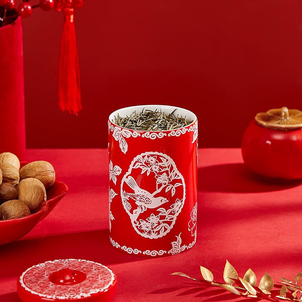- BRIGHTENING UP ANY PLACE: White Chinese-style pattern complementing red body of the canister set fits any table, adding a touch to your kitchen.