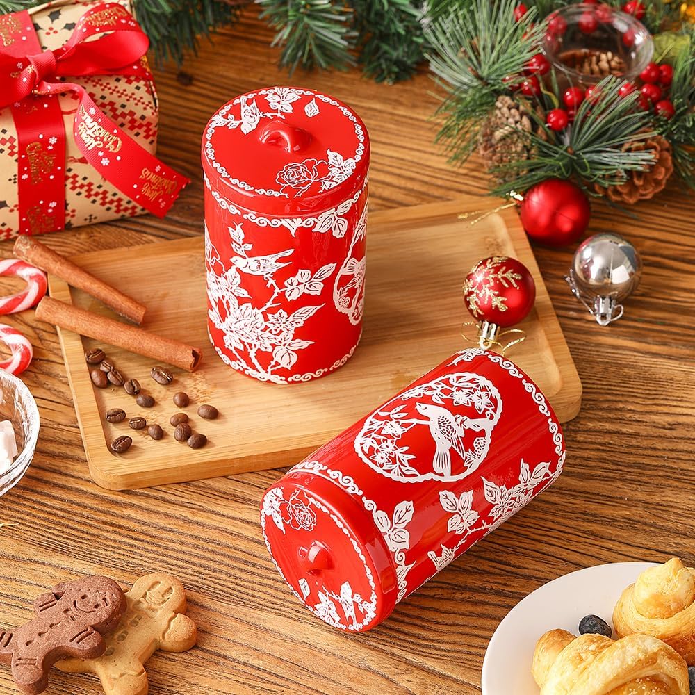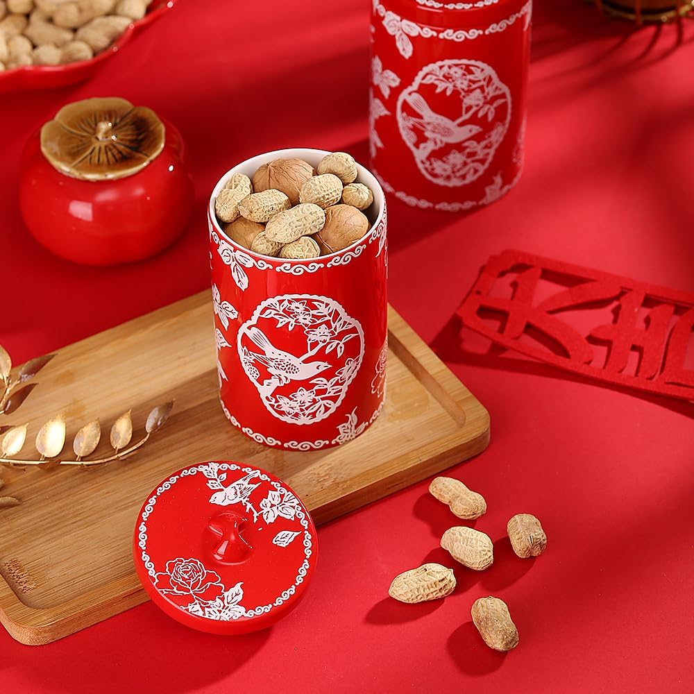 - FESTIVAL STYLE:Red with white color with vivid pattern gives a lively and refreshing feeling that never goes out of date. The porcelain canister set is a gorgeous decor to your kitchen and home.