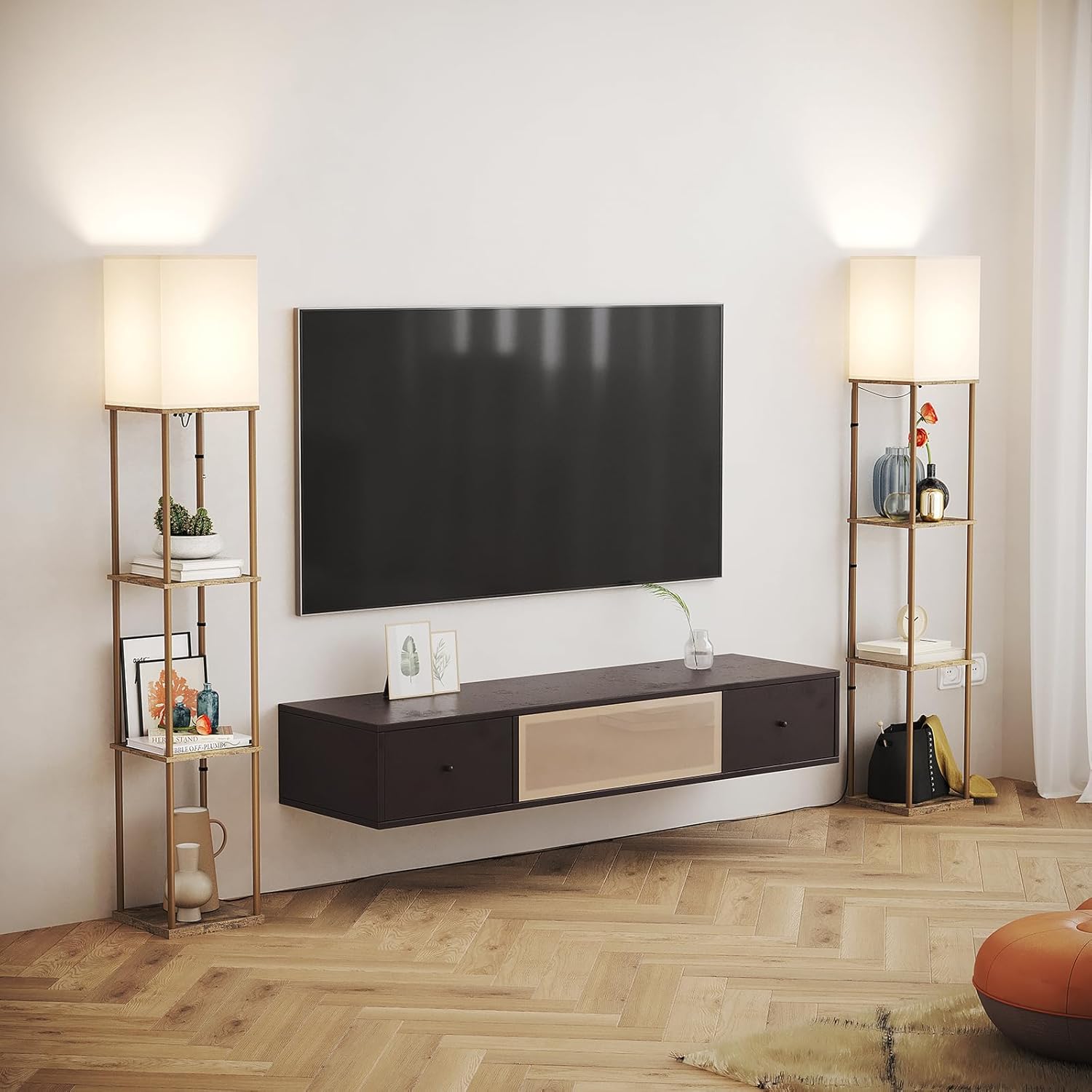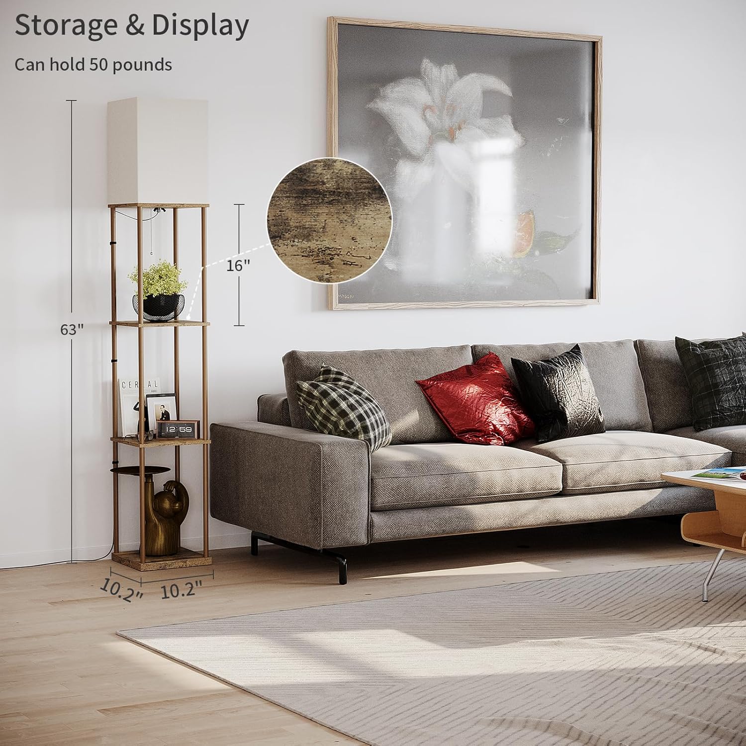 SUNMORY Floor Lamp with Shelves, Modern Square Shelf Lamps, Display Shelf Standing Lamp with 3 Color Temperature Bulb, Corner Bookshelf Lamps for Living Room and Bedroom Office, Home Decor