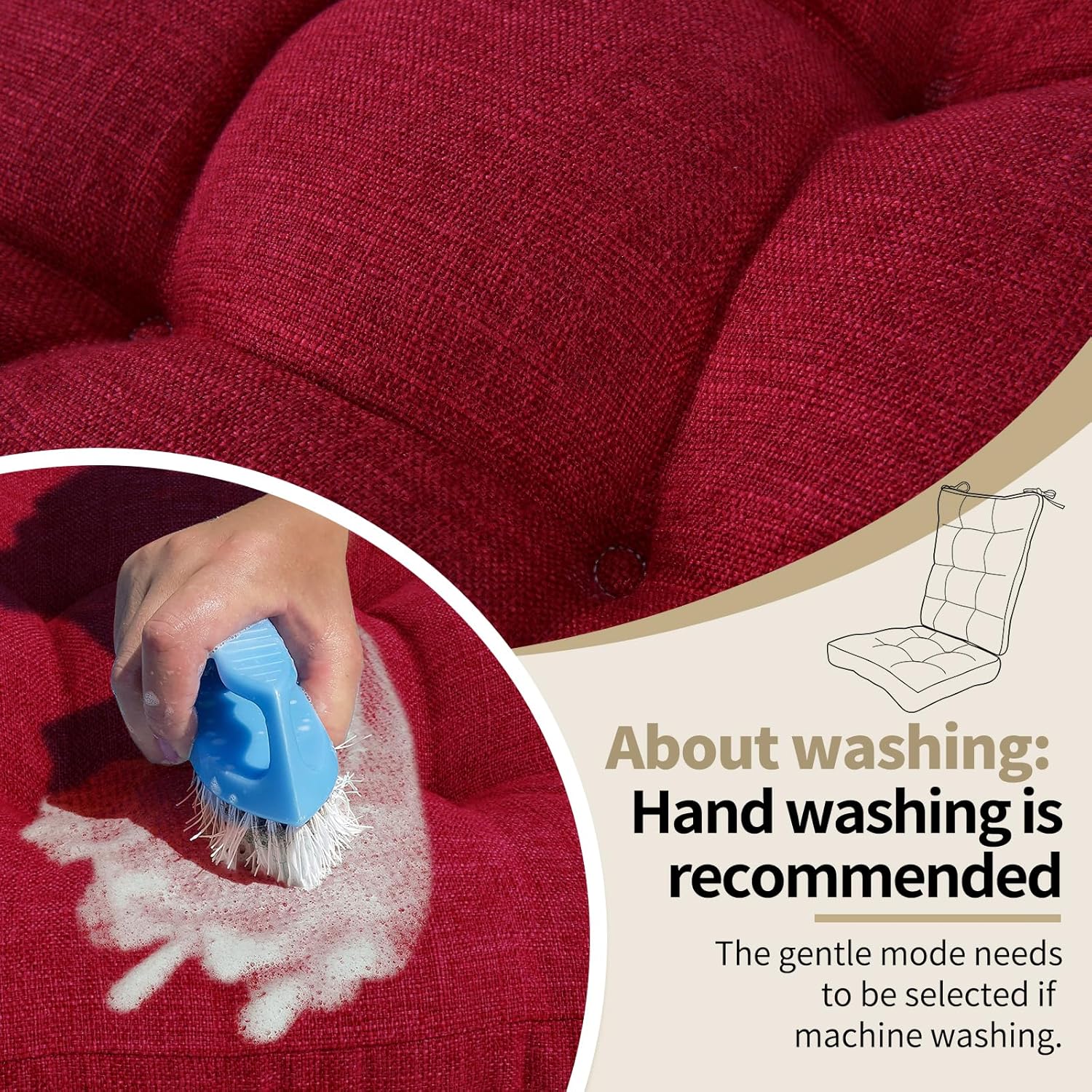 BUYUE Chair Cushion Set for Rocking Chair, Back Pillow & Seat Cushion with Ties, Original Woven Fabric Non-Slip Chair Pads for Elderly Sitting, Red