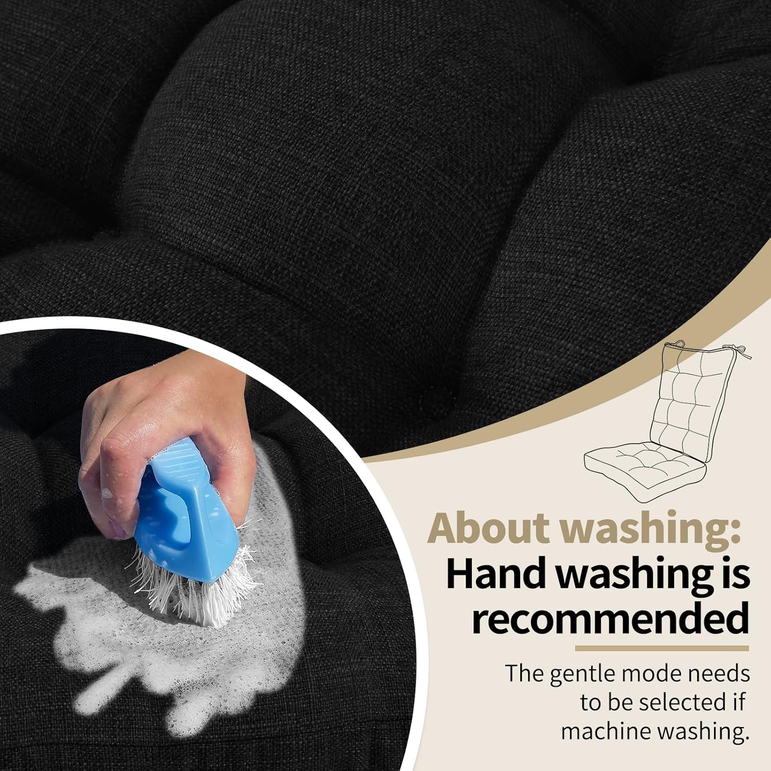 BUYUE Chair Cushion Set for Rocking Chair, Back Pillow & Seat Cushion with Ties, Original Woven Fabric Non-Slip Chair Pads for Elderly Sitting, Black