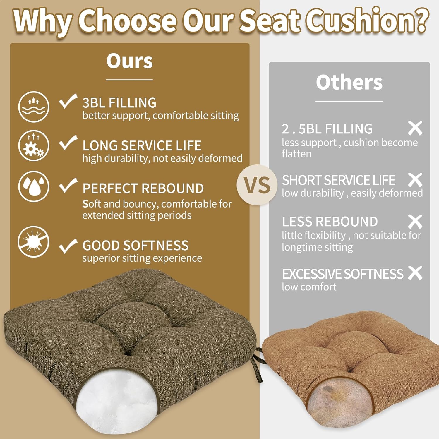 - ✦Product Details✦: Surface: Breathable Woven fabric. Inside: 100% Polyester. Bottom: Silicone Anti-Slip Fabric. Good support and quality fabric make this chair cushion stand out functionally and visually for the office or home, making the chair more warm and comfortable. Product with COMPACT package excess air and water removal, these small differences in product size and weight lead to significant carbon emission reductions. The cushion will return to its original shape after a few hours.