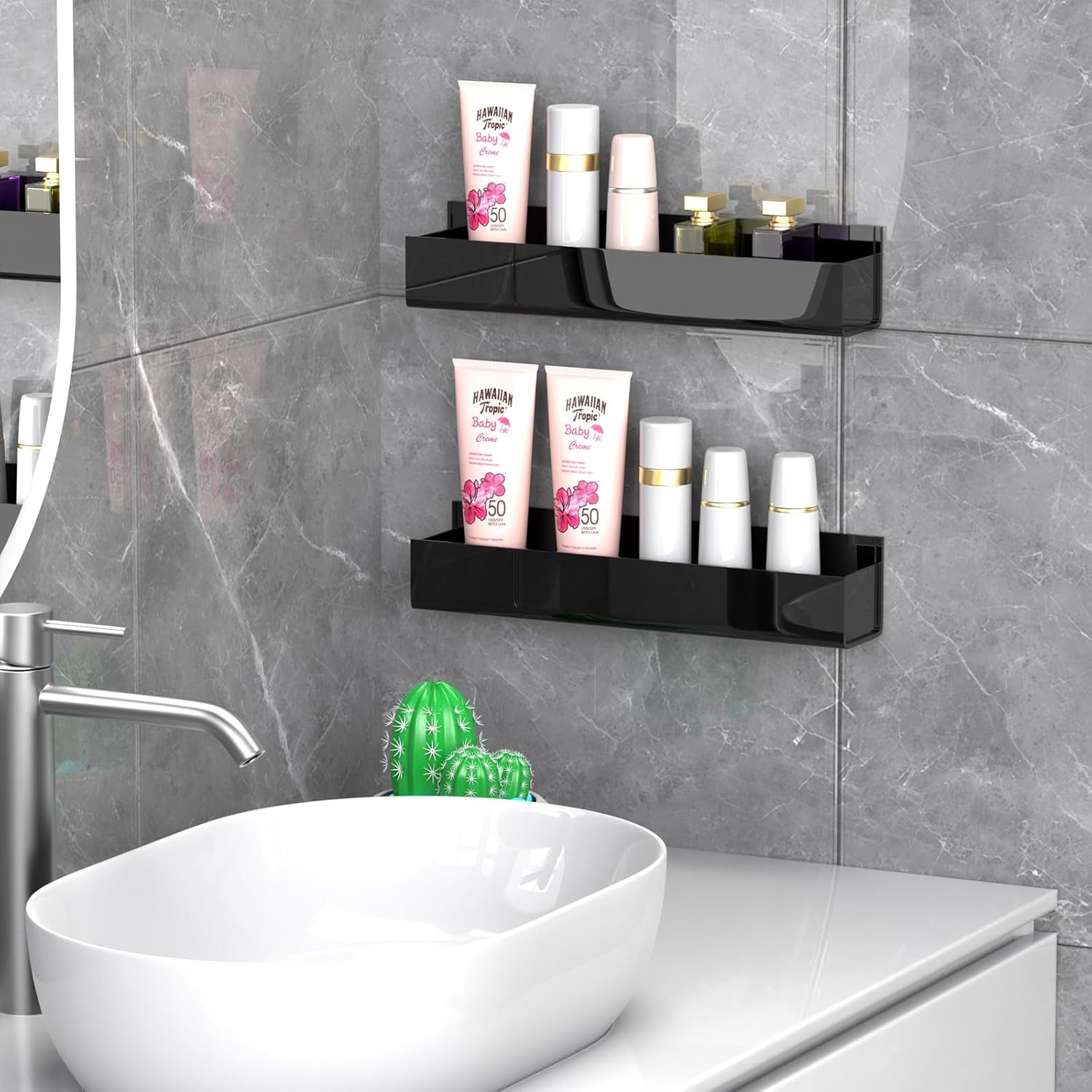 PMMASTO Adhesive Acrylic Spice Rack Organizer for Wall with Nano Double Sided Tape, Spice Shelf Organization for Kitchen Cabinet Door/Pantry Door, Wall Mount Seasoning Rack (Black-2 Pack)