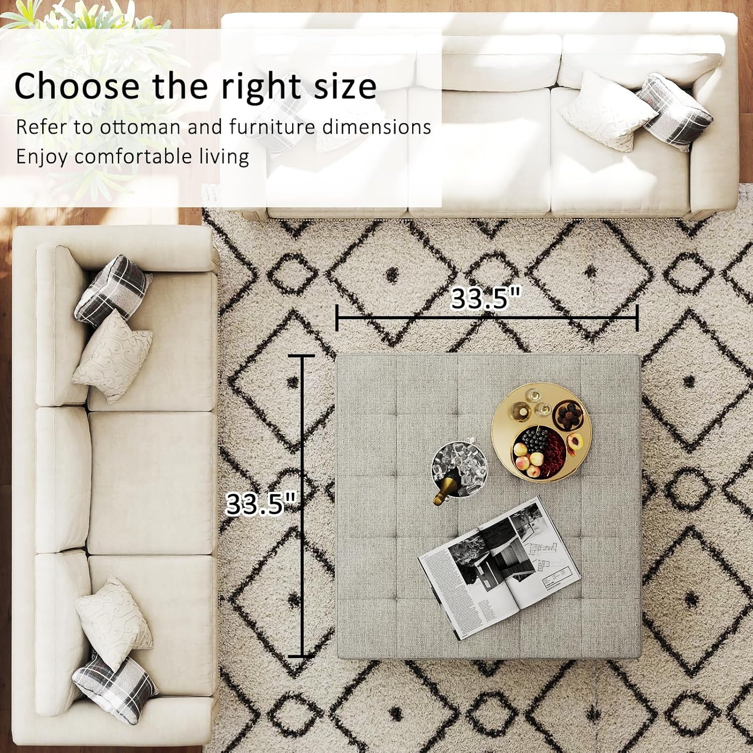 - Ottoman Coffee Table Size:33.5" Wx33.5" Dx18.5" H. Easy to bear 400 pounds