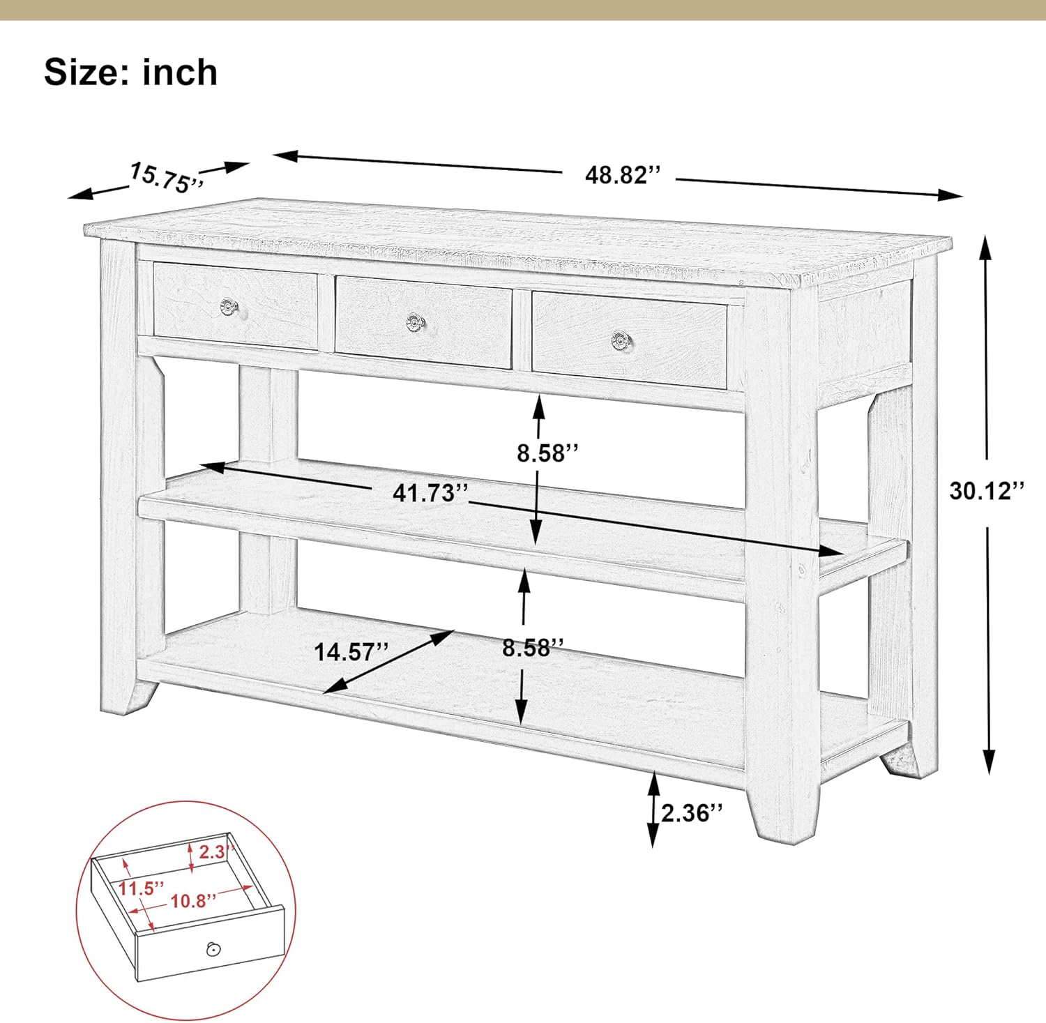 Farmhouse Wood Entryway Console Table 48-Inch Modern Sofa Entry Table with Drawers and Storage Shelves for Entrance Living Room (Antique White)