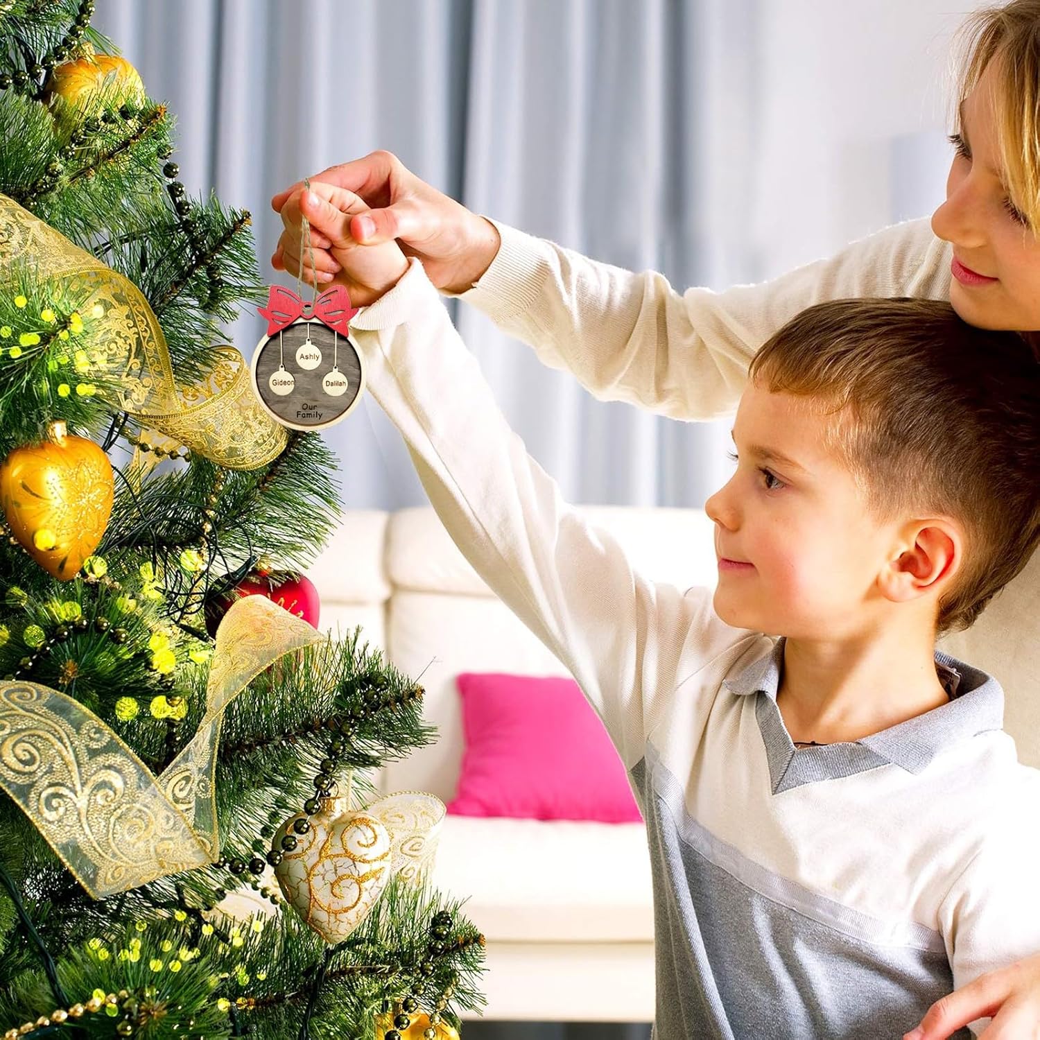 - Custom Family Christmas Ornaments-This cute customized Christmas ornaments are suit for family of 2 3 4 5 6 7 8. The Christmas ornament is made of wood which is environmentally friendly and recyclable. Great choice to decorate your Christmas tree!