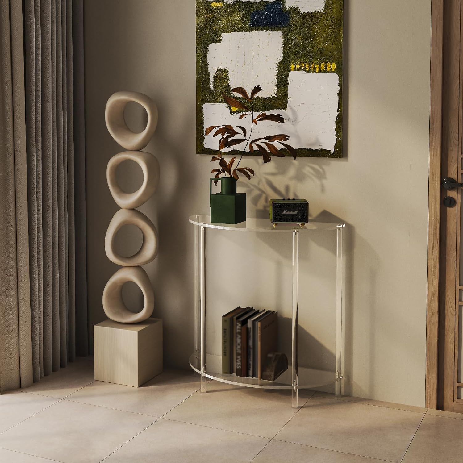 Acrylic Console Table, Half Moon, 29.5" Small Entryway Table, Clear Entry Table for Sofa, Foyer, Hallway, Living Room, Easy Assembly, 2 Tier, 11.8" D x 31.5" H