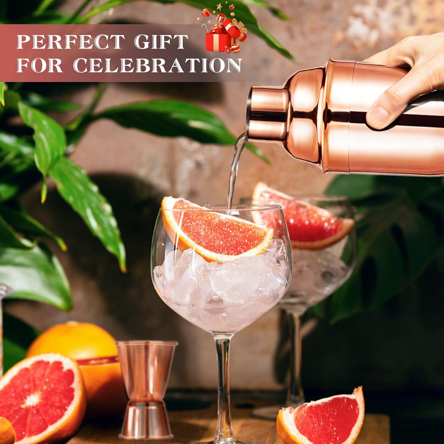 Cocktail Shaker Set, Mixology Bartender Kit 10-Piece Bar Tool Set with Stylish Bamboo Stand, Bar kit: Matini Shaker Mixing Spoon Muddler Jigger Cocksrew for Barware Set | Rose