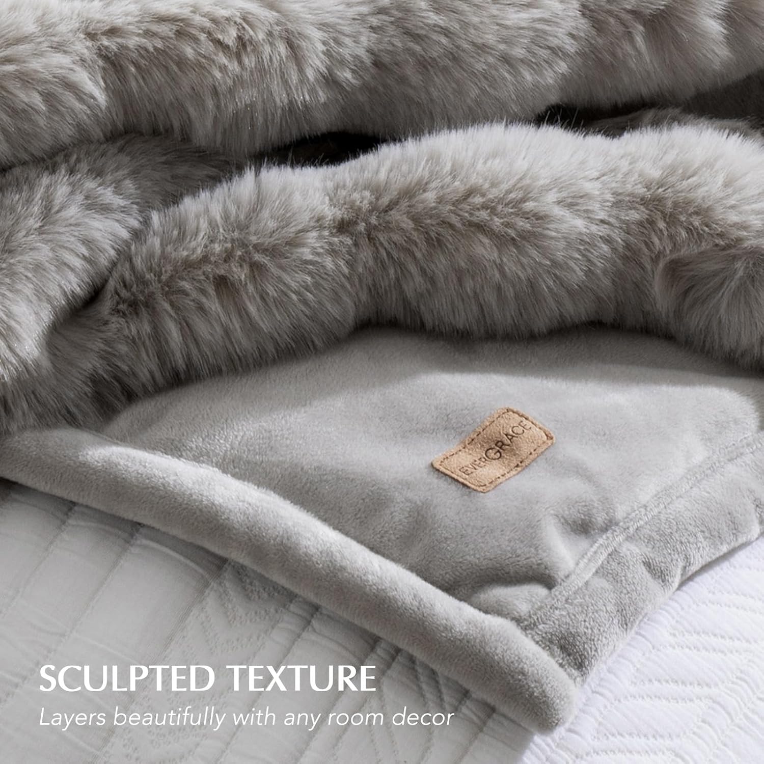 EVERGRACE Ultra Soft Luxury Fluffy Ridgeline Faux Rabbit Fur Throw Blanket, Thick Warm Bubble Throw for Bed, Cozy Plush Reversible Blankets for Couch, Chair, Sofa, Taupe, 50x60 Inches, 870 GSM