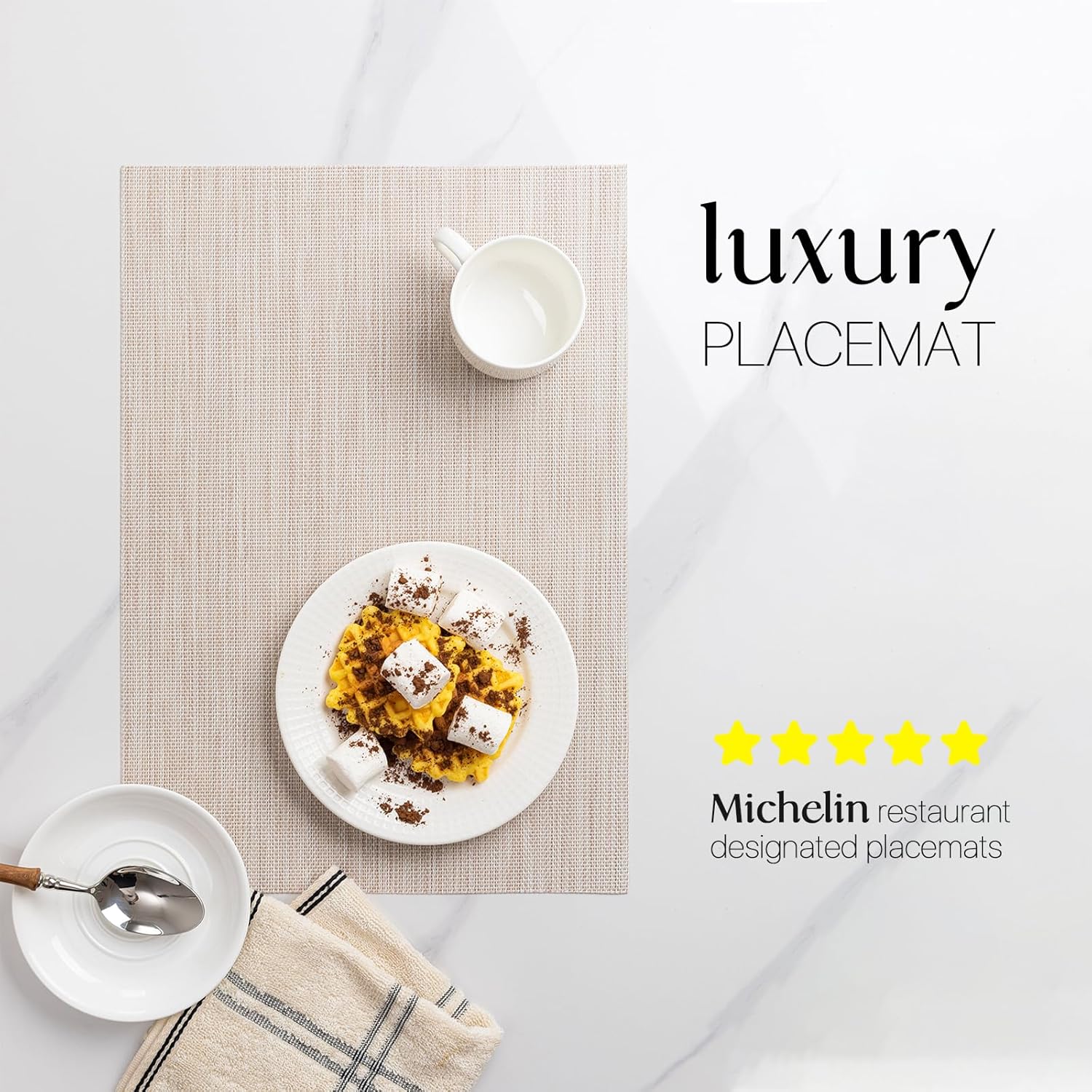 LEXMORE PlaceMats Set of 12 Vinyl/Plastic Woven Place Mats for Kitchen Table Indoor/Outdoor Washable PlaceMat Wipeable Dining Table Mats(Beige)