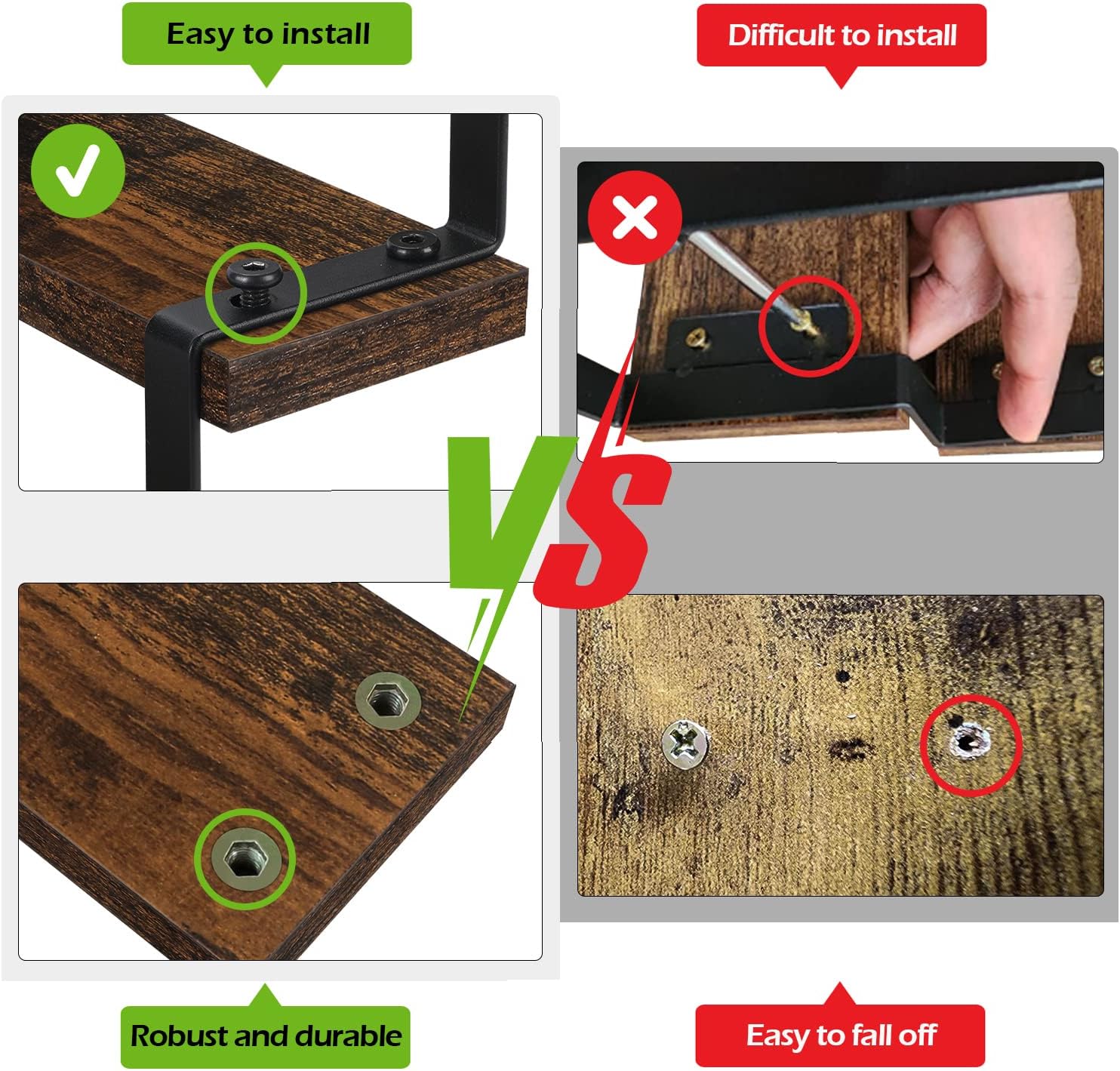 - Vintage Appearance: Rustic and aesthetic wood grain that fits perfectly with the black matt paint. Simple and elegant dark brown adds a vintage rustic feel to your home. This rack is suitable for many places in your home.