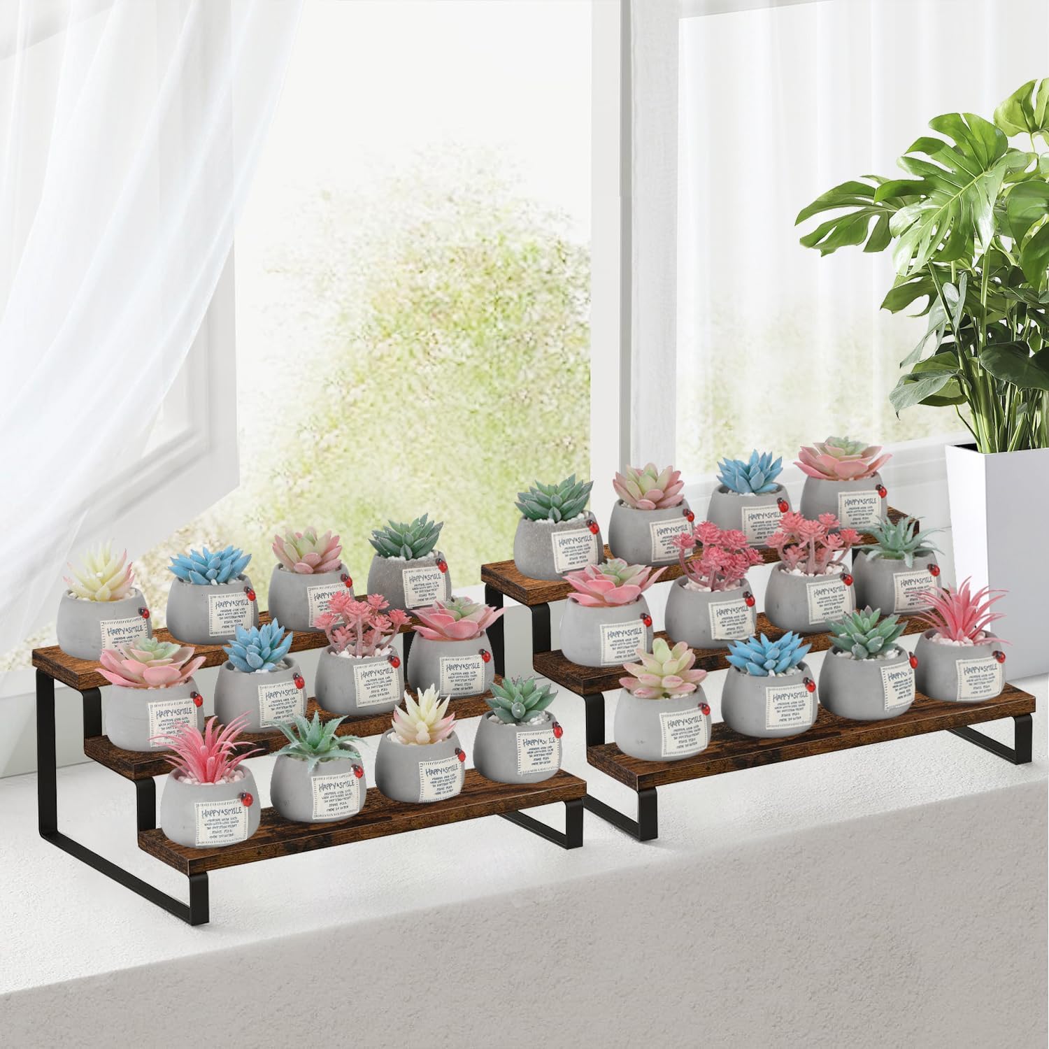 - Convenient Design: The stepped design makes efficient use of your counter space. This wooden display riser is a great idea for displaying toy figurines in cabinets, celebrating party desserts, and cosmetics on the dresser. The raised tiers help to create an eye-catching feature for your items.