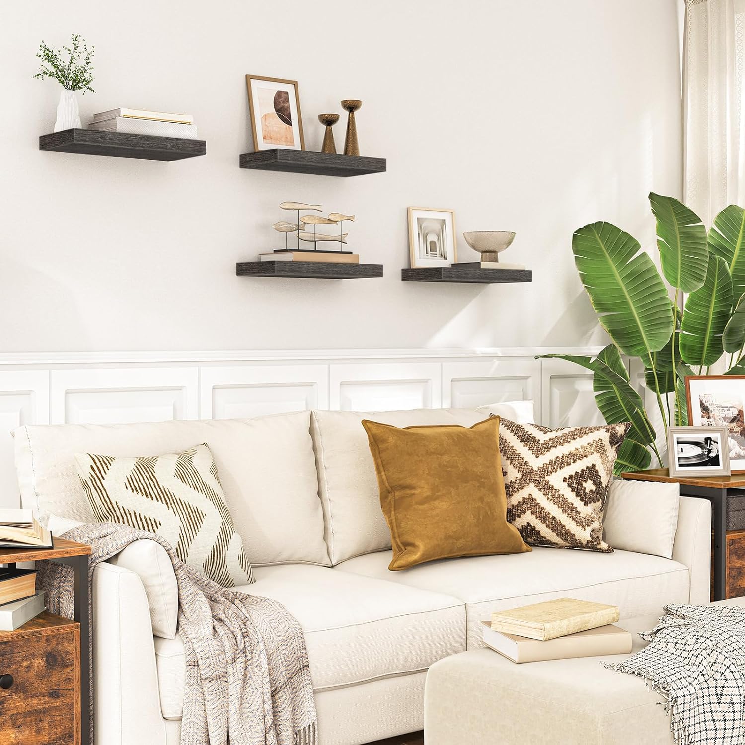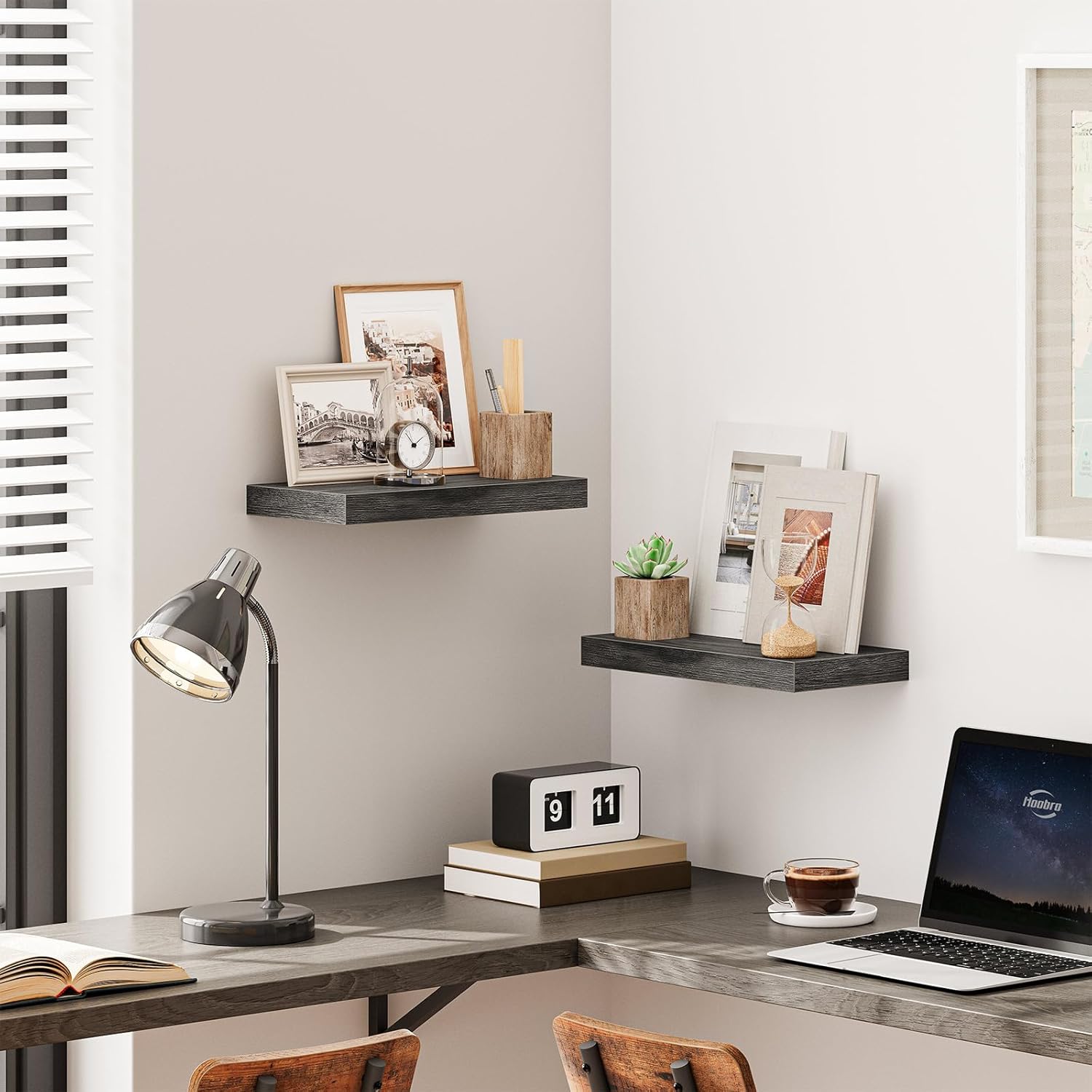 - Exquisite Wall Surface Decoration: Two elegant charcoal gray wooden shelves can be placed on each wall surface of all household rooms. This floating shelf for room wall is not only for its decoration effect, but also for this wall shelves high practicality. It is an ideal place to display your beloved photos, trophies and other delicate ecorations