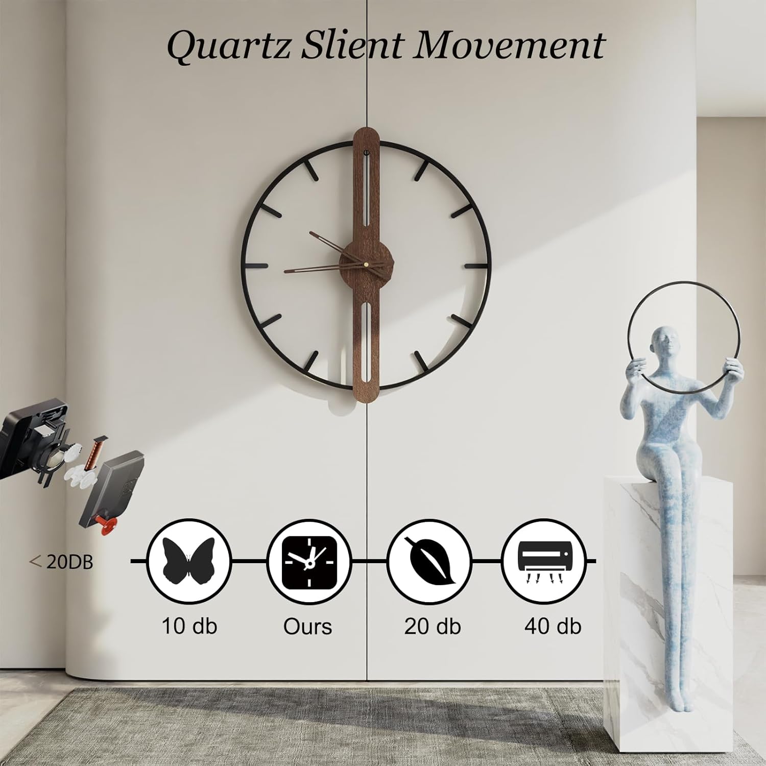 - Utterly Silent and Simple Installation: Our high-quality clock mechanism delivers precise timekeeping while maintaining a silent environment, free from ticking sounds. Refer to installation instructions, installation is effortless with the included hanging hook