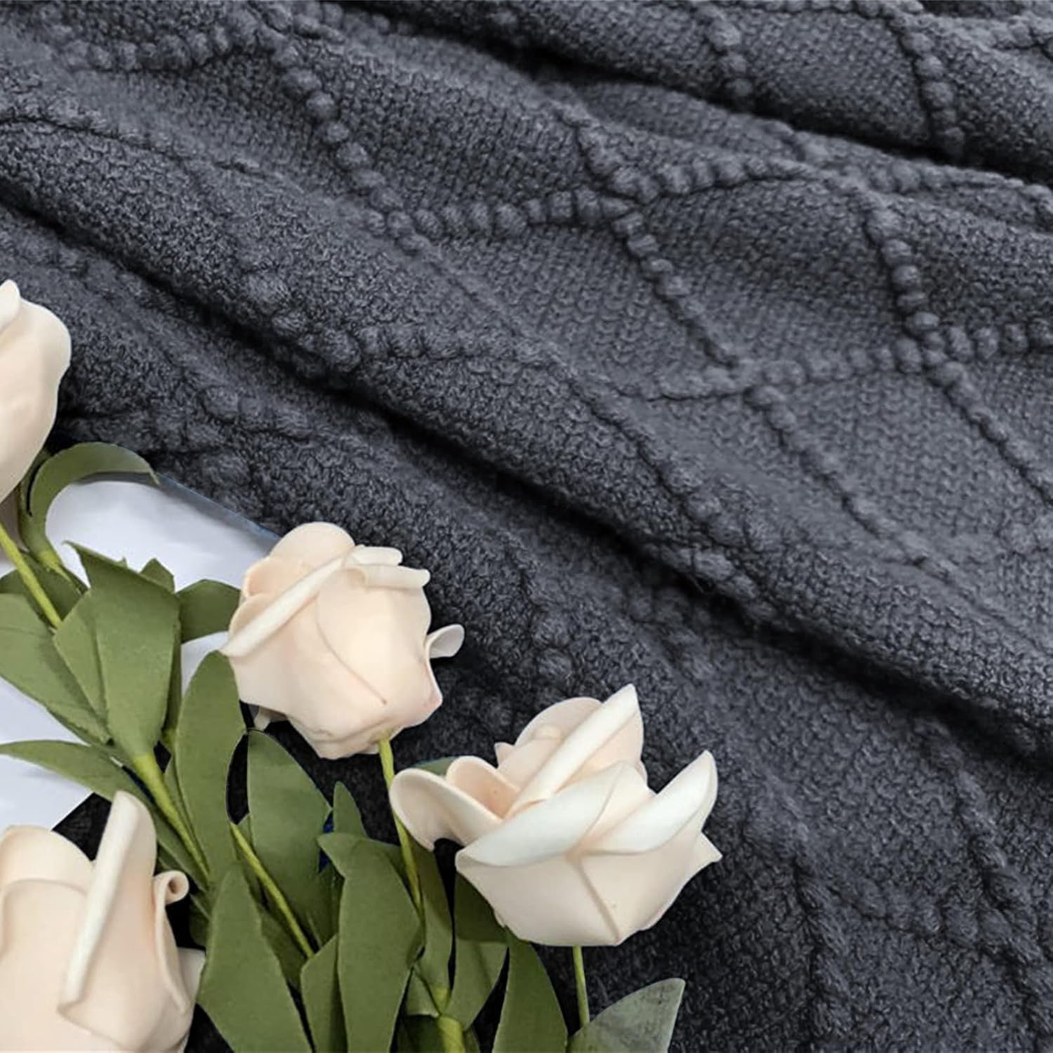 inhand Knit Graphite Grey Throw Blanket for Couch, Soft Living Room Home Decor Knitted Twin Size Blanket, Outdoor Lightweight Breathable Summer Blanket, Farmhouse Warm Woven Decorative, 60"x80"