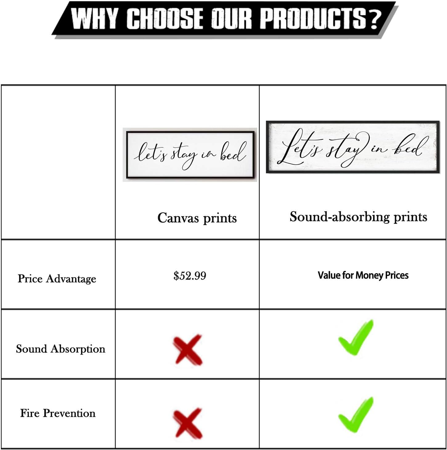 - Exclusive New Material: Breaking the traditional canvas manufacturing process, innovatively using acoustic polyester panel which brings a new feature to the sign for bedroom - sound absorption. In addition to decorating your bedroom, the above bed sign can also purify the sound environment and create a quiet and comfortable space