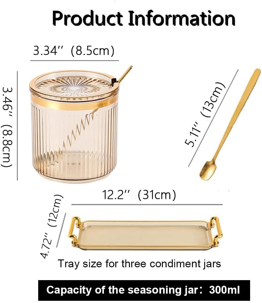 - ▲▲【Material】: Transparent thickened acrylic condiment container, made of PP plastic, equipped with 3 metal spoons and a practical tray with a handle, sturdy and corrosion-resistant, it can be effectively stored while decorating home life, adding color