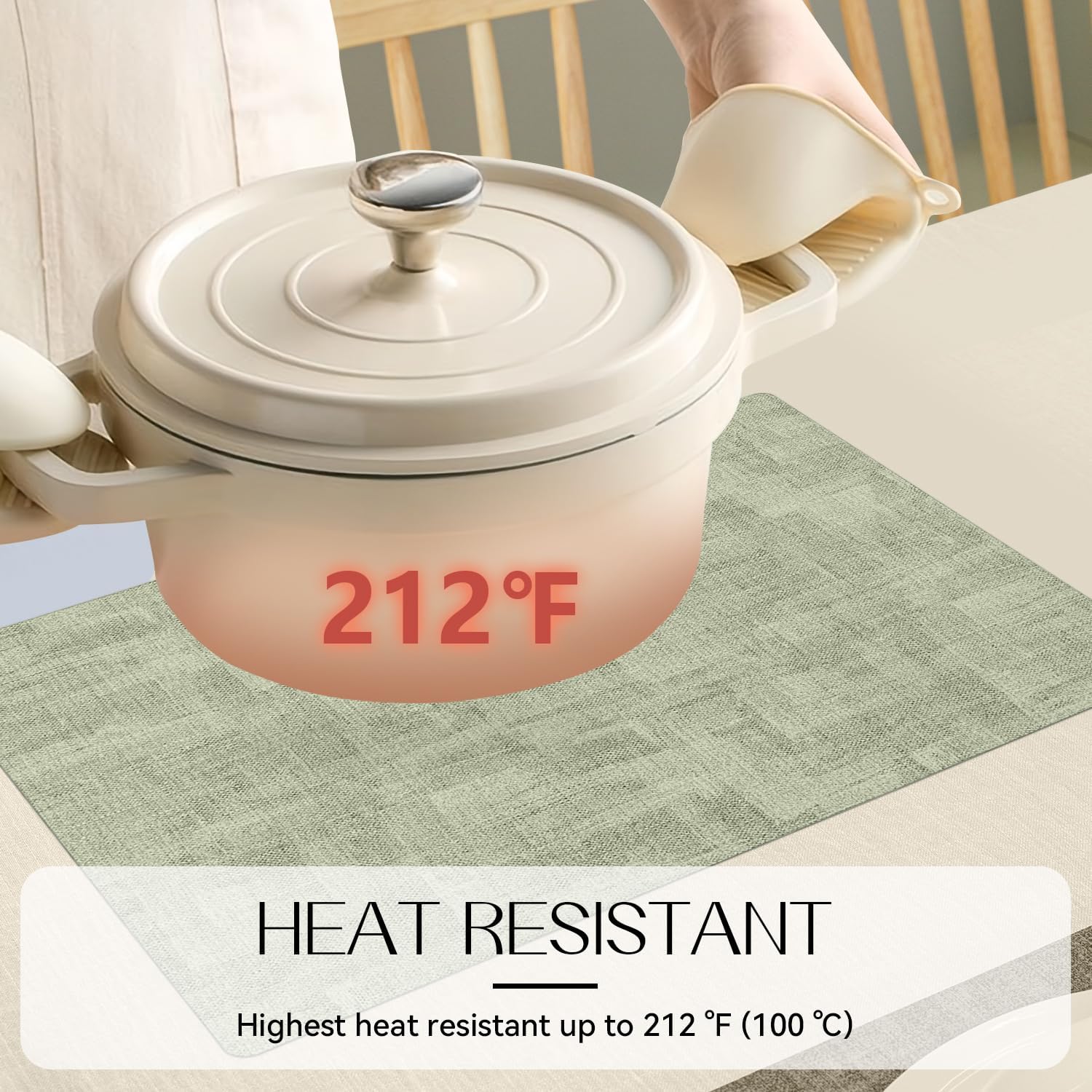 - HEAT-RESISTANT: Both sides are made of long-lasting and heat -resistant faux leather. the thickened placemats (0.12 inch/ 0.3 cm) ensure the heat won’t transfer to your cherish table. Highest heat-resistant can amount to 212 °F (100 °C), from leaving a white heat mark.