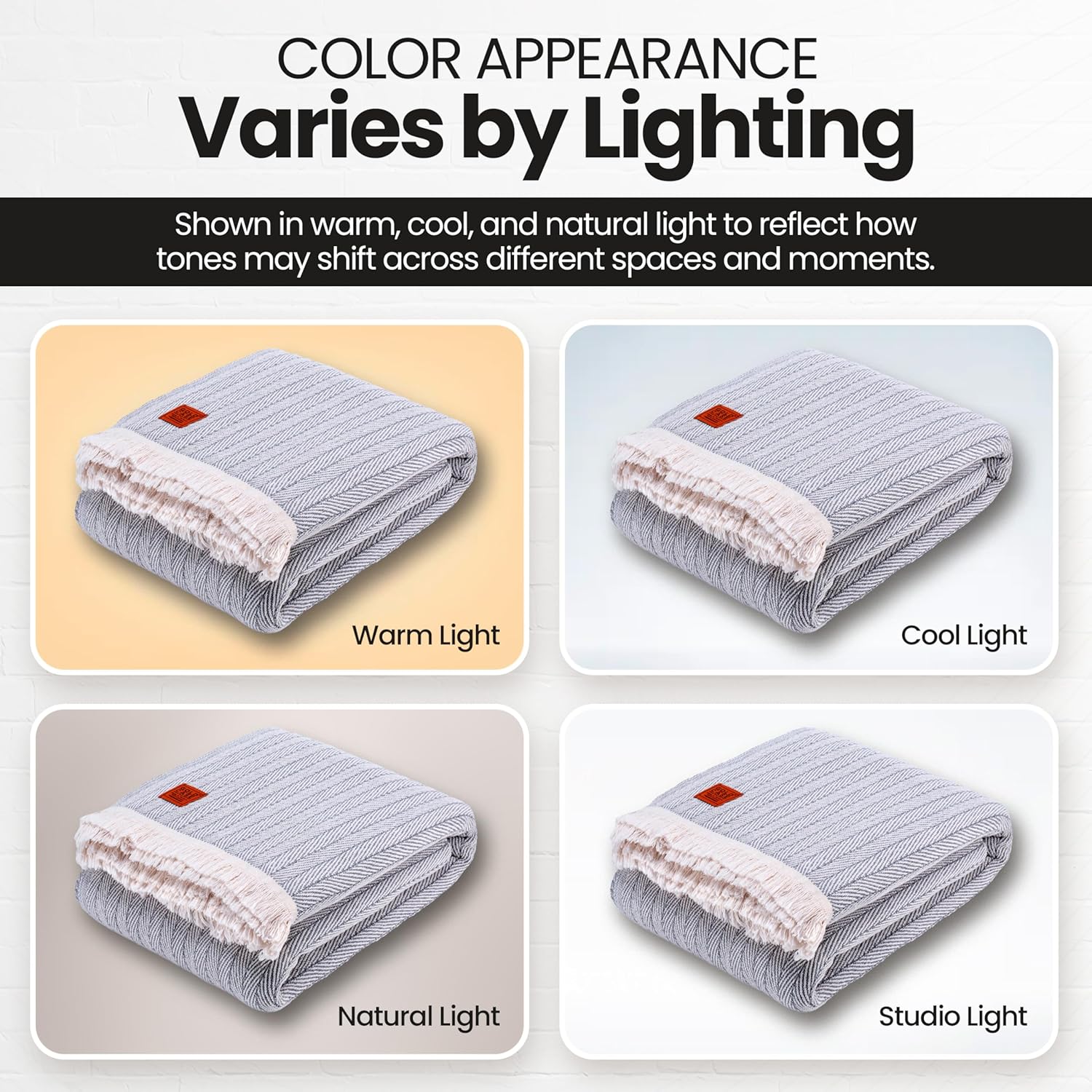 - LIGHTWEIGHT LAYERS FOR RELAXED MOMENTS: Woven from 100% recycled Turkish cotton, this breathable cotton blanket throw adds a soft, textured touch to your space; this bed throw blanket made for layering on your bed, or adding a laid-back look to your decor