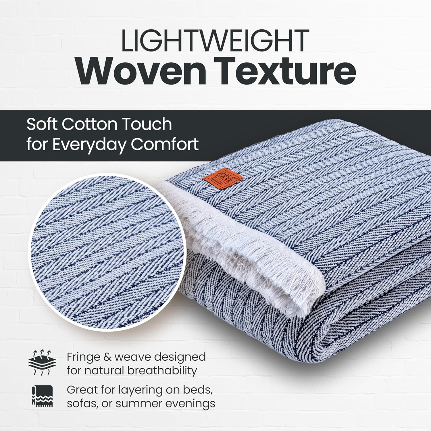 - LIGHTWEIGHT LAYERS FOR RELAXED MOMENTS: Woven from 100% recycled Turkish cotton, this breathable cotton blanket throw adds a soft, textured touch to your space; this bed throw blanket made for layering on your bed, or adding a laid-back look to your decor
