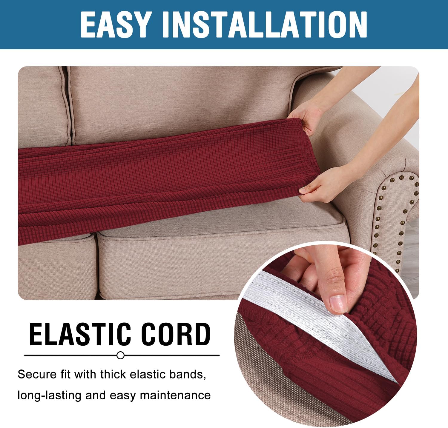 H.VERSAILTEX Super Stretch Individual Seat Cushion Covers Sofa Covers Couch Cushion Covers Slipcover Sets Thick Jacquard Textured Twill Fabric (1 Piece Chair Cushion Cover, Burgundy Red)