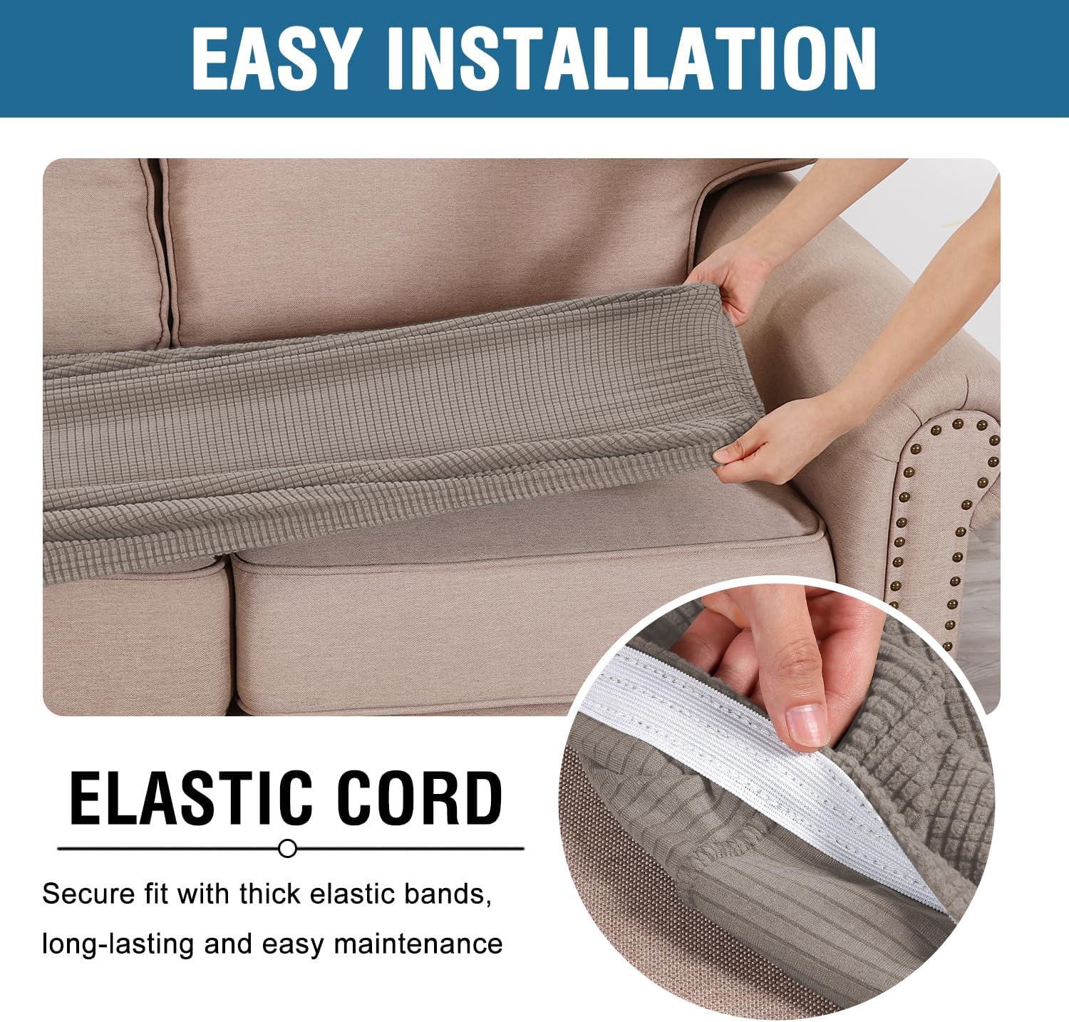 - NON SLIP: Effortless for installation (guide photos on selling page), sewn with thick elastic loops to cover the bottom edges. It is easy to install and take off, making your home more harmony, high recommended for both leather and cloth furniture