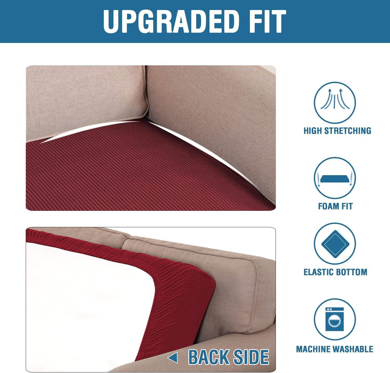 H.VERSAILTEX Super Stretch Individual Seat Cushion Covers Sofa Covers Couch Cushion Covers Slipcover Sets Thick Jacquard Textured Twill Fabric (1 Piece Sofa Cushion Cover, Burgundy Red)