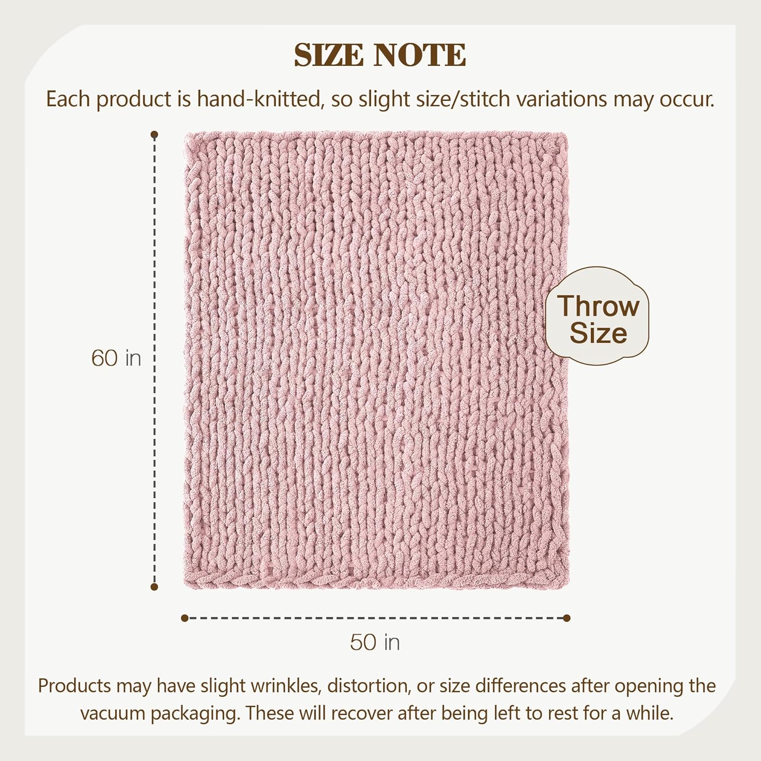 Carriediosa Chunky Knit Throw Blanket 50" X 60", 100% Hand Made Large Chenille Loop Yarn Soft Fluffy Throws for Couch Sofa Bed, Big Crochet Cozy Heavy Thick Cable Woven Blankets, Dusty Pink