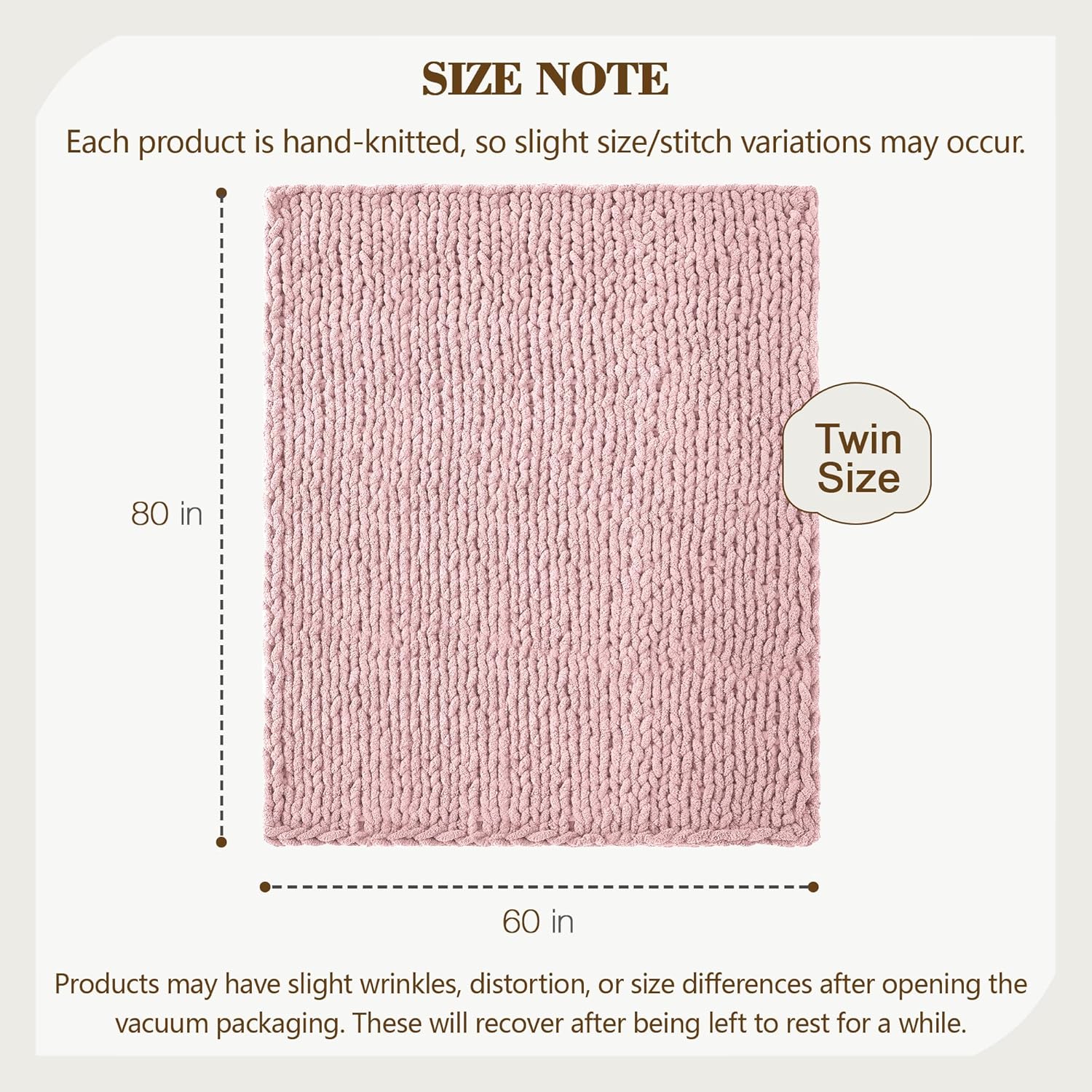 Carriediosa Chunky Knit Throw Blanket 60" X 80" Twin, 100% Hand Made Large Chenille Loop Yarn Soft Fluffy Throws for Couch Sofa Bed, Big Crochet Cozy Heavy Thick Cable Woven Blankets, Dusty Pink