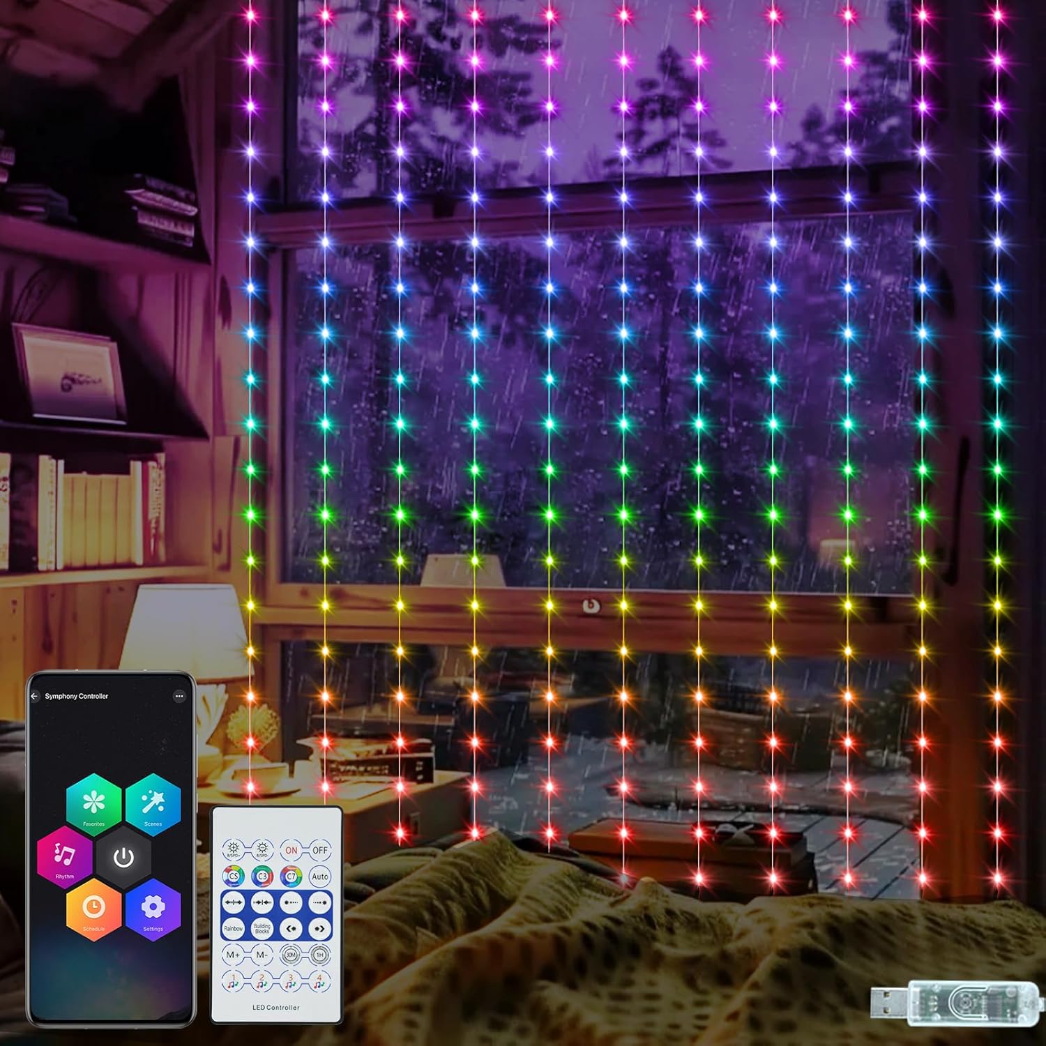 - Stunning 16 Million Colors: Transform any space with vibrant, dynamic lighting! Featuring 300 energy-efficient LEDs, these curtain lights offer 16 million color options to create the perfect ambiance