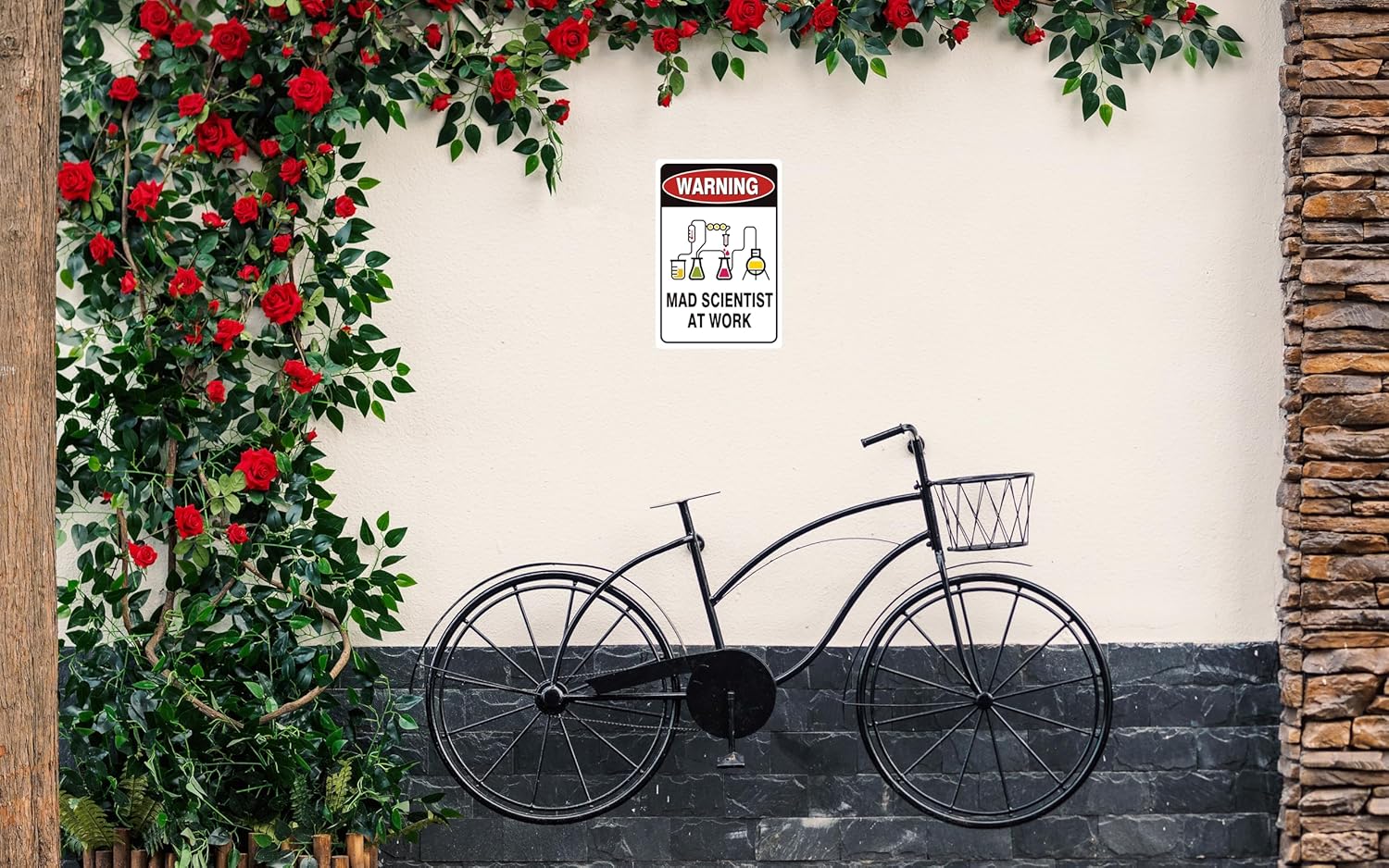 Vintage Tin Sign Retro Metal Funny Warning Mad Scientist At Work Signs for Home Decor Stylish Wall Art Plaques Gift for Bathroom Kitchen and Gothic Wall Decor in Every Room 12x8 in