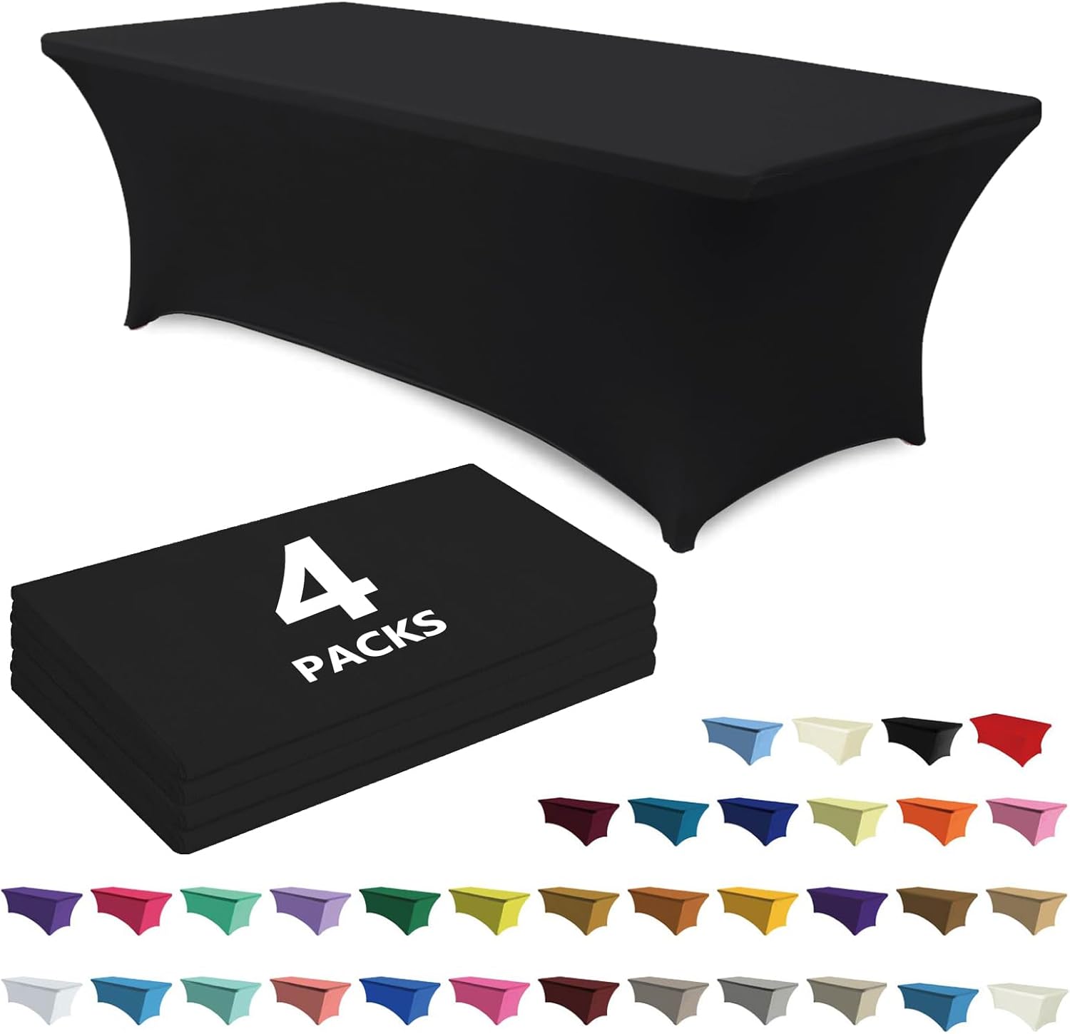 ABCCANOPY 4 Pack 8 FT Black Spandex Table Cover Stretch Fitted Wrinkle Resistant Tablecloth Reuse for Rectangular Folding Table Patry Event Wedding Banquet Protector