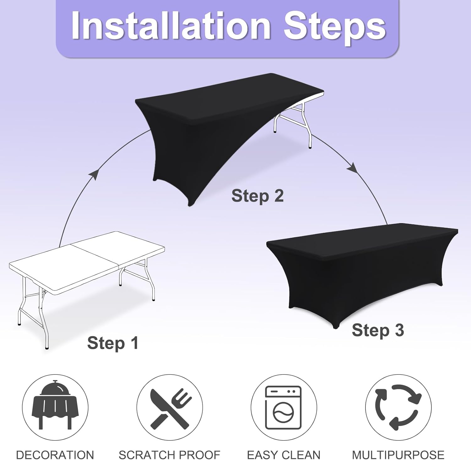 ABCCANOPY 4 Pack 4 FT Black Spandex Table Cover Stretch Fitted Wrinkle Resistant Tablecloth Reuse for Rectangular Folding Table Patry Event Wedding Banquet Protector
