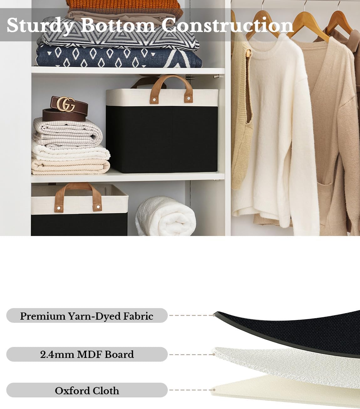 StorageWorks Storage Bins, Fabric Storage Bins for Shelves, Large Storage Baskets with Metal Frame, Closet Baskets and Bins with Handles, Black and White, 2-Pack