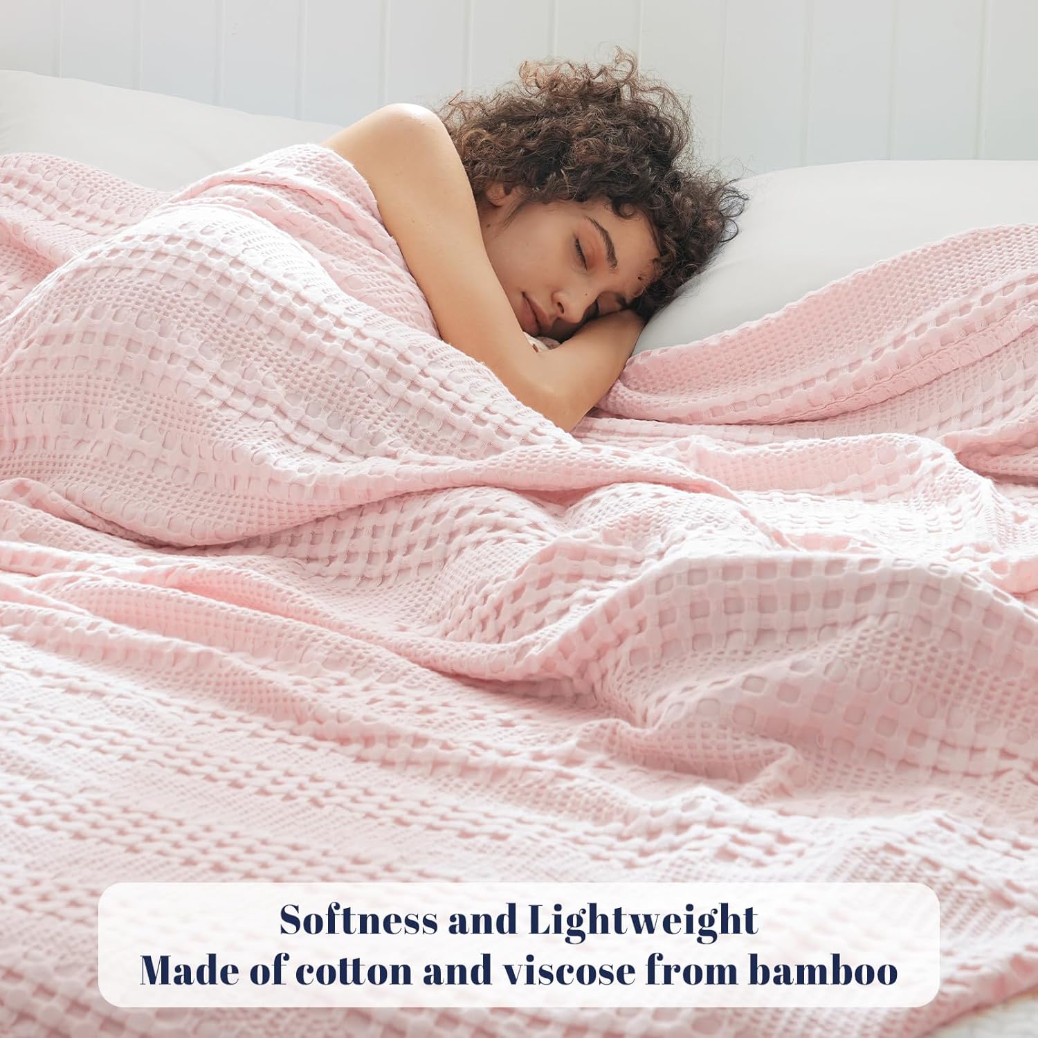 PHF Cooling Waffle Blanket King Size, Lightweight 60% Rayon Derived from Bamboo & 40% Cotton Breathable Blanket for Hot Sleepers, Soft and Luxury for Bed Couch and Sofa, 104"x90", Pink