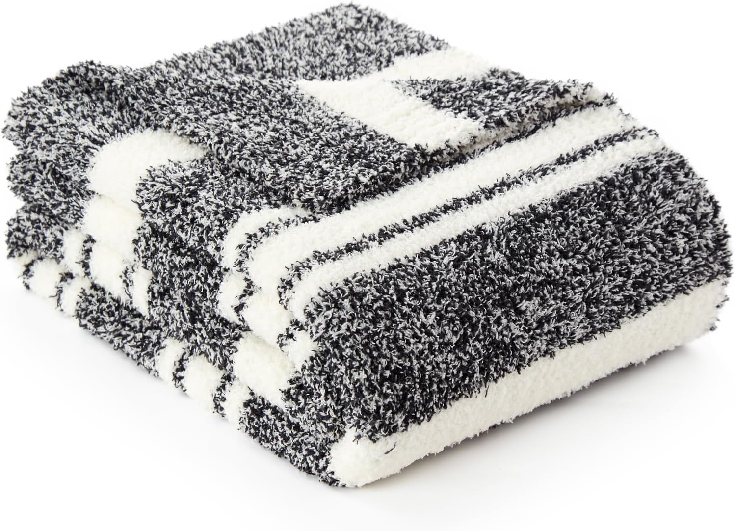 Snuggle Sac Queen Size Bed Blanket Stripe Black, Super Soft Warm Bedding Blankets Cozy Knit Fuzzy Plush Blankets for Bed, Living Room, Stripe Black, Queen 90"x90"