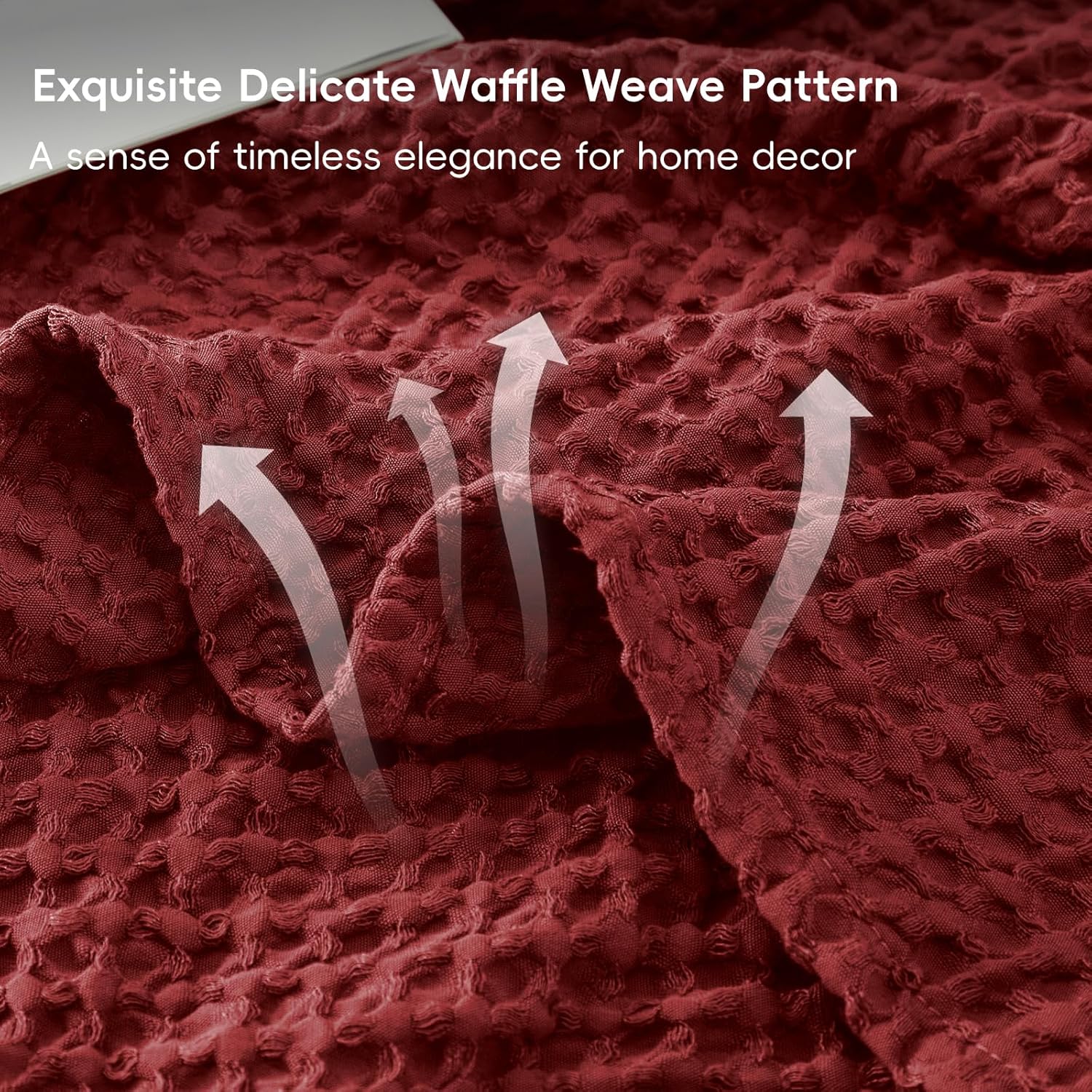 PHF Ultra Soft Waffle Weave Blanket King Size 104"x 90"- Washed Lightweight Breathable Cozy Woven Blanket for Bed - Aesthetic Decor for Couch Bedding Sofa Home Car - Wine